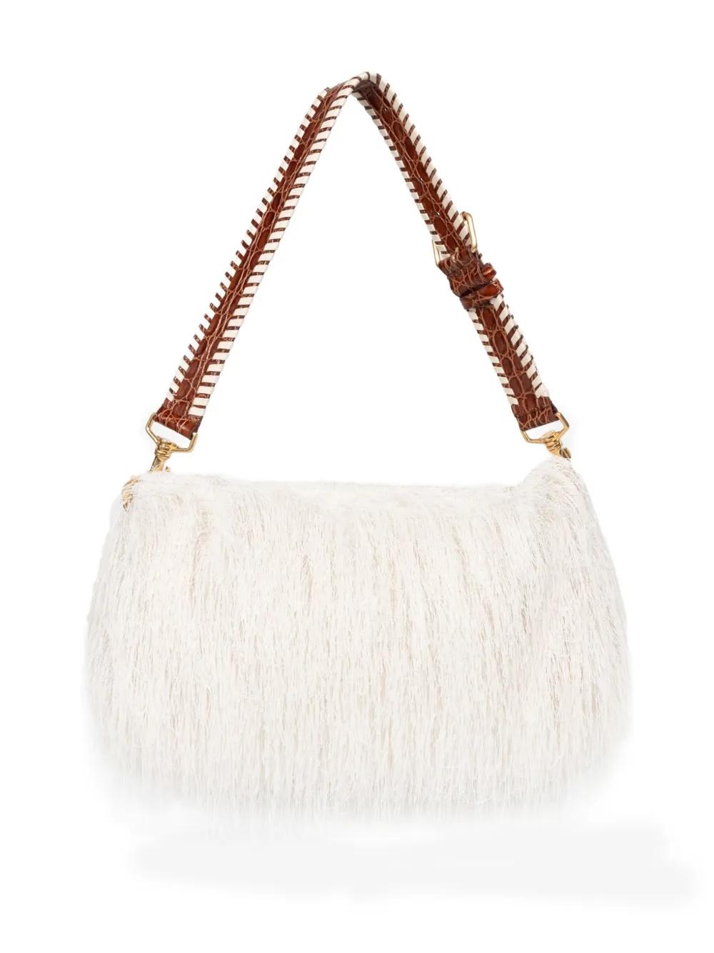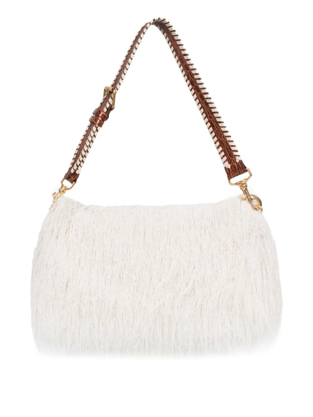 white fringed trim leather shoulder strap gold-tone hardware zip fastening