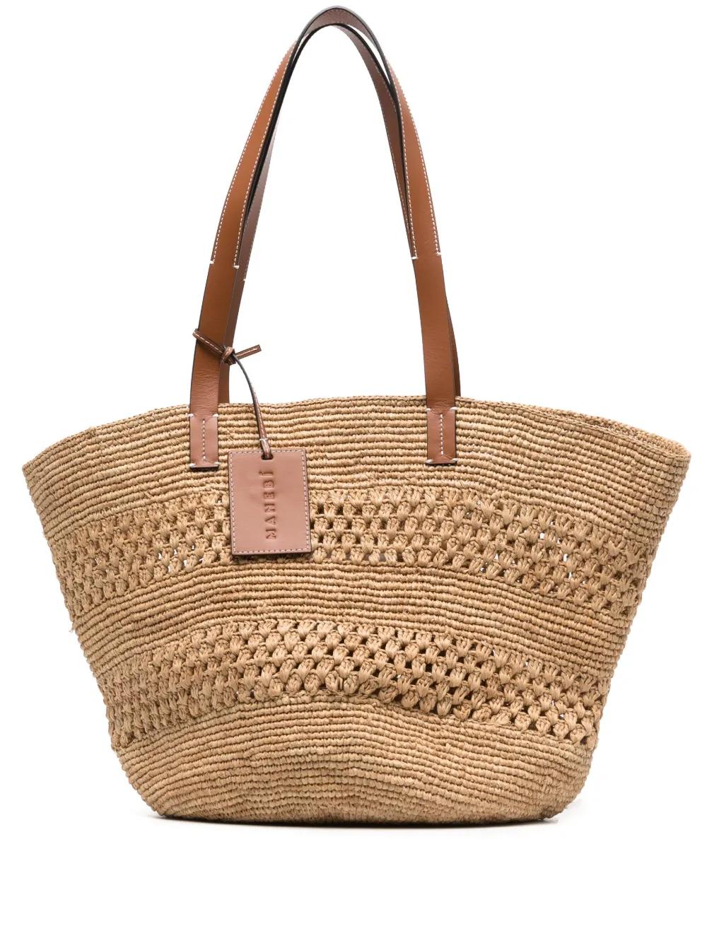 Manebi logo-tag raffia tote bag - Neutrals