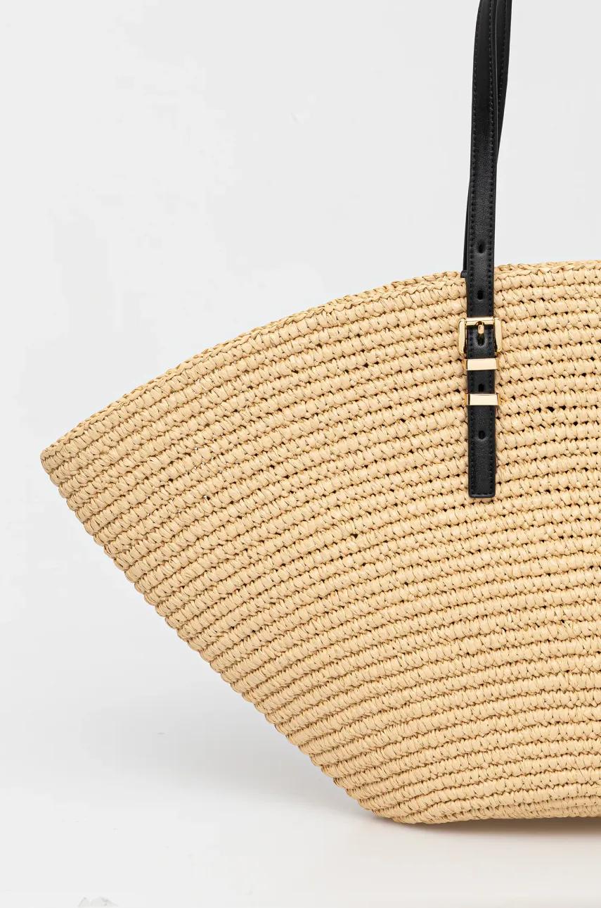 - Posiada regulowany uchwyt. - Model bez podszewki. - Dwie wsuwane kieszenie wewnętrzne, które ułatwiają bezpieczne przechowywanie drobiazgów. - Mieści format A4. - Szerokość u podstawy: 62 cm. - Wysokość: 28 cm. - Głębokość: 16 cm.