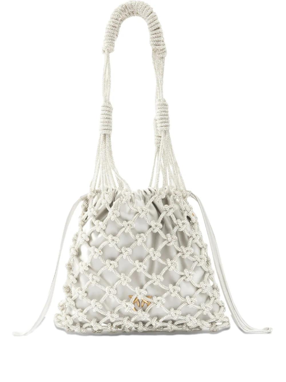 grey drawstring fastening single shoulder strap interwoven design mesh design