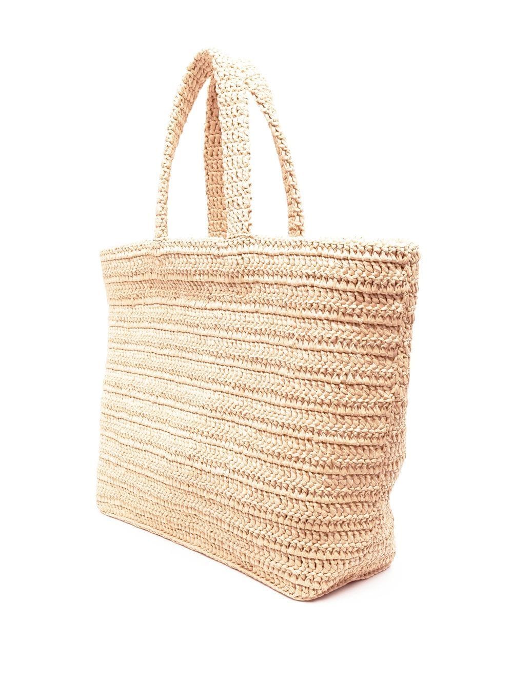 beige straw flat top handles woven raffia design embroidered logo open top internal logo patch