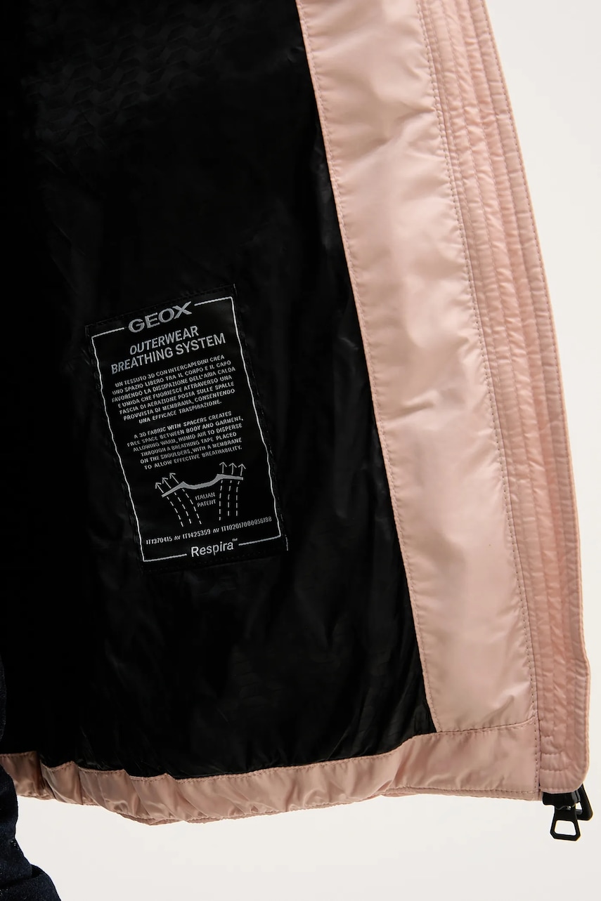 - Technologia Geox Respira dzięki specjalnej oddychającej i nieprzemakalnej membranie pozwala na przedostanie się wilgoci na zewnątrz i zapewnia wodoodporność. - Hydrofobowe wykończenie materiału wierzchniego nie pozwala dostać się wilgoci do wewnątrz, dzięki czemu dobrze chroni przed niekorzystnymi warunkami atmosferycznymi. - Lekko ocieplony model na podszewce. - Prosty, nie blokujący ruchów fason. - Zapięcie na dwustronny suwak. - Model z kapturem. - Kaptur ściągany troczkami. - Dwie wsuwane i zapinane na suwak kieszenie boczne. - Długość: 64 cm. - Szerokość w ramionach: 36 cm. - Szerokość pod pachami: 47 cm. - Wymiary podane dla rozmiaru: 38.