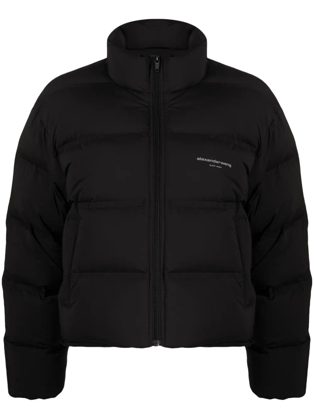 Alexander Wang reflective-logo cropped puffer jacket - Black