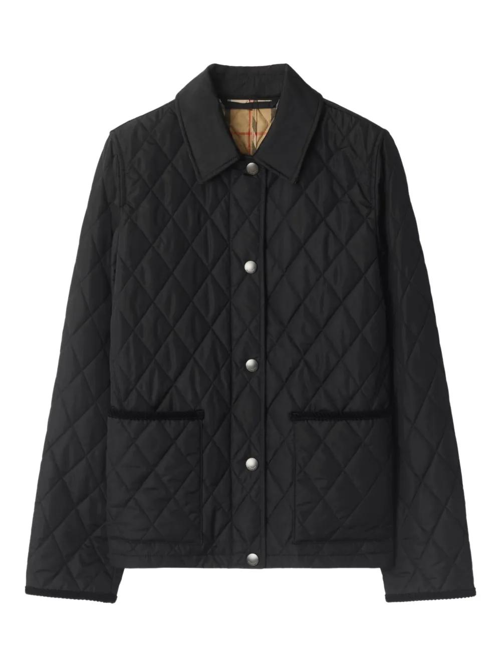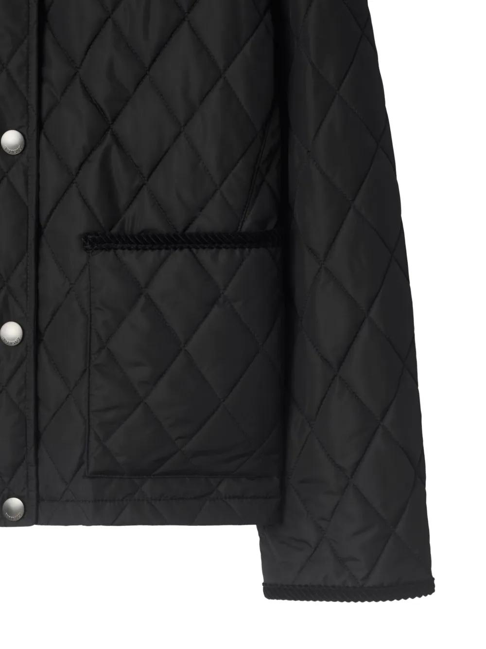 black front press-stud fastening two front patch pockets contrasting trim classic collar