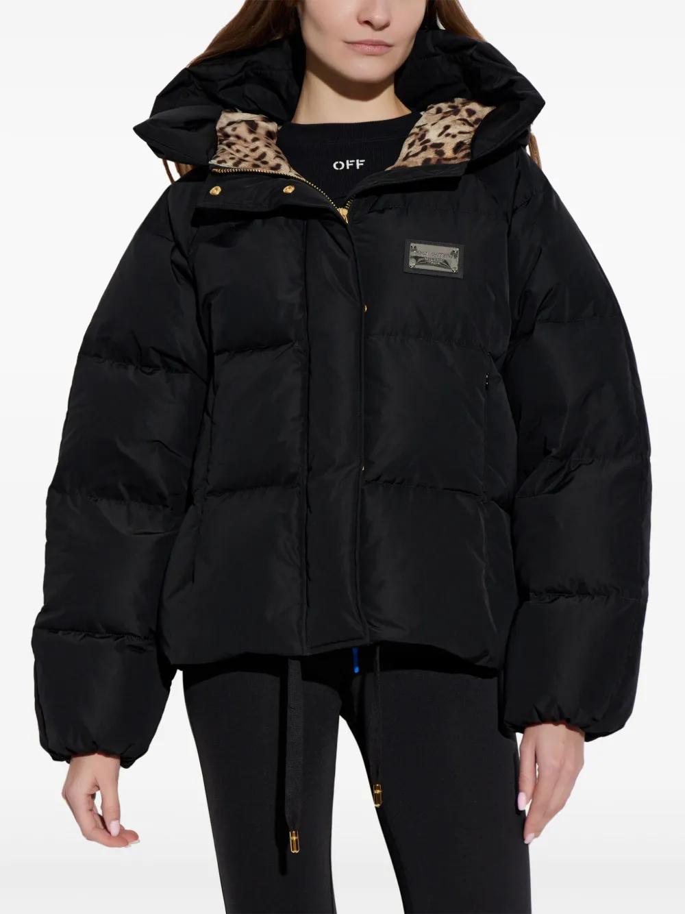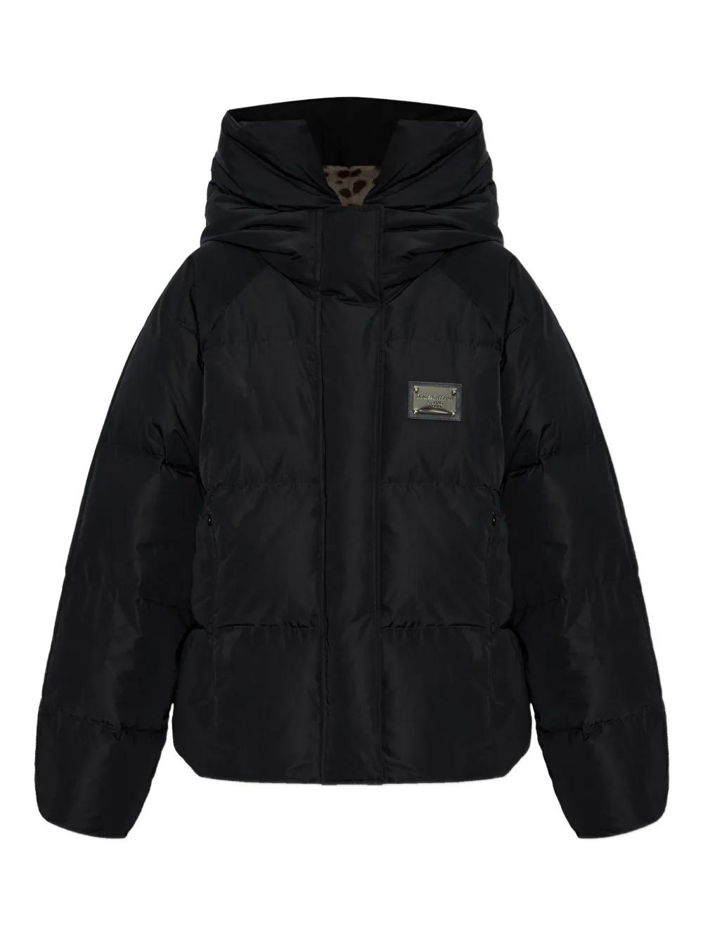 Dolce & Gabbana hooded logo-plaque puffer jacket - Black