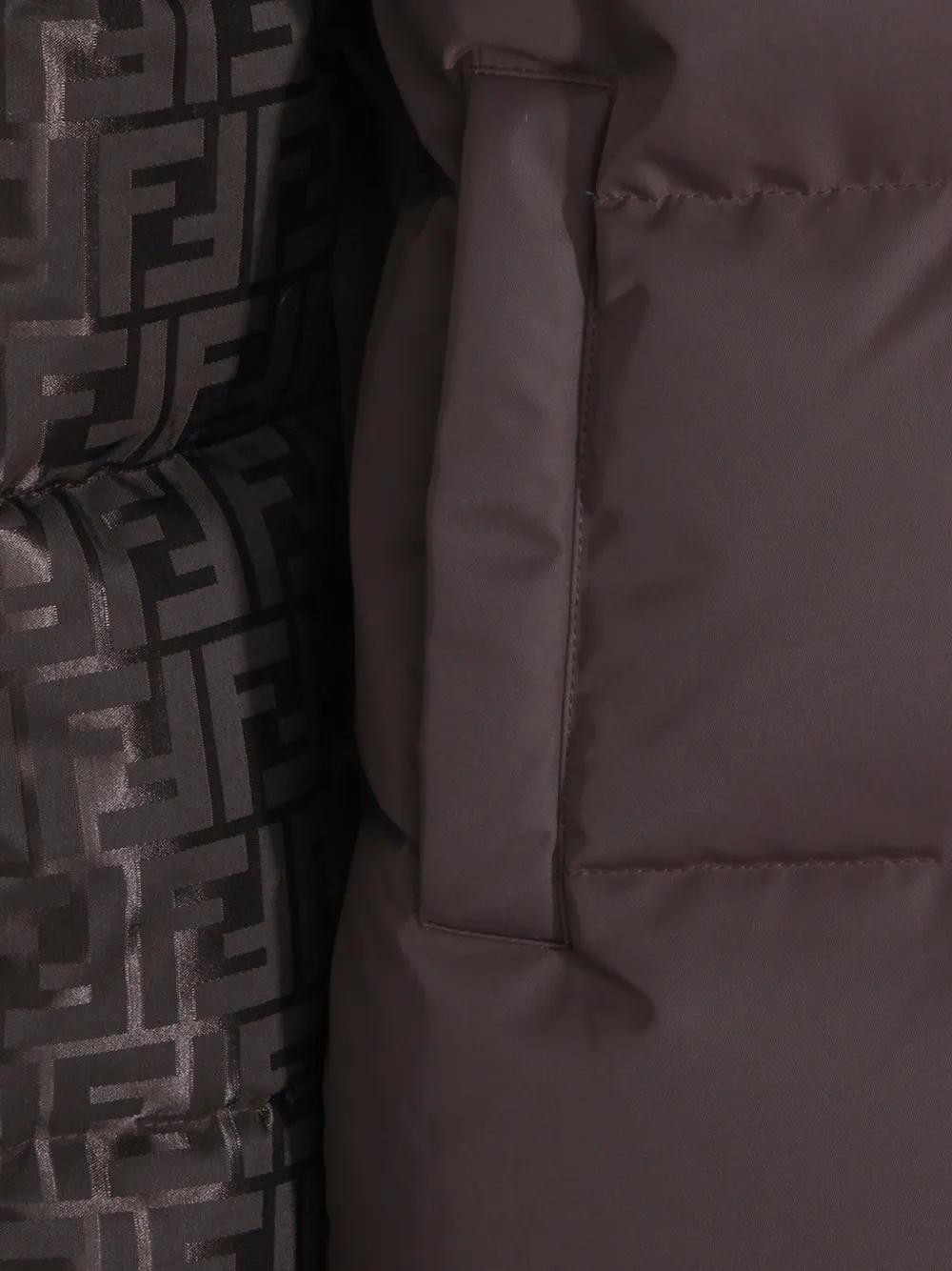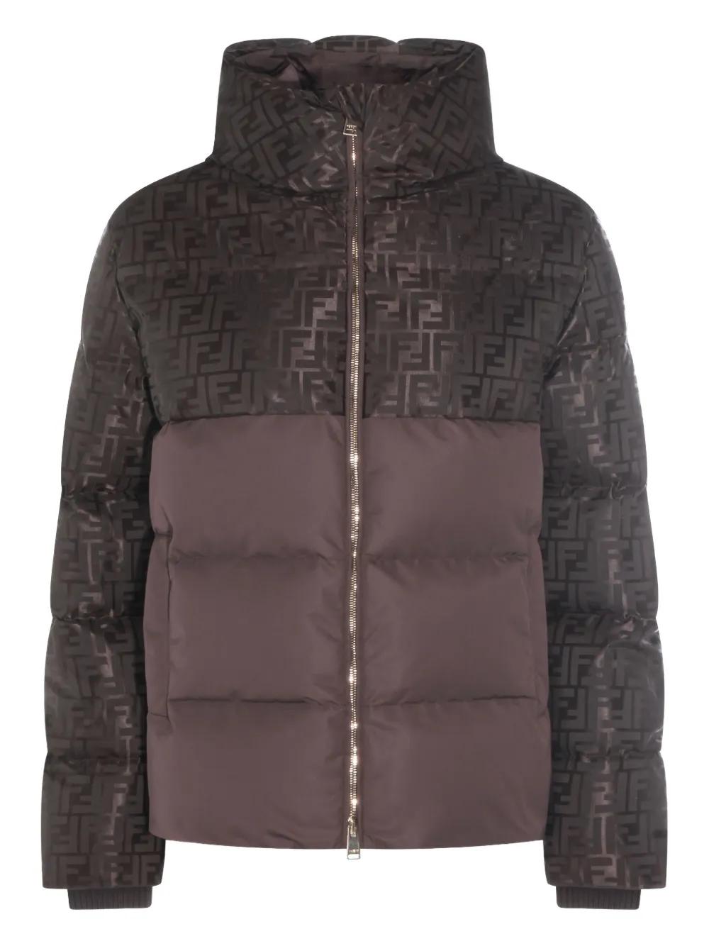 brown monogram pattern zip fastening ribbed cuffs panelled design