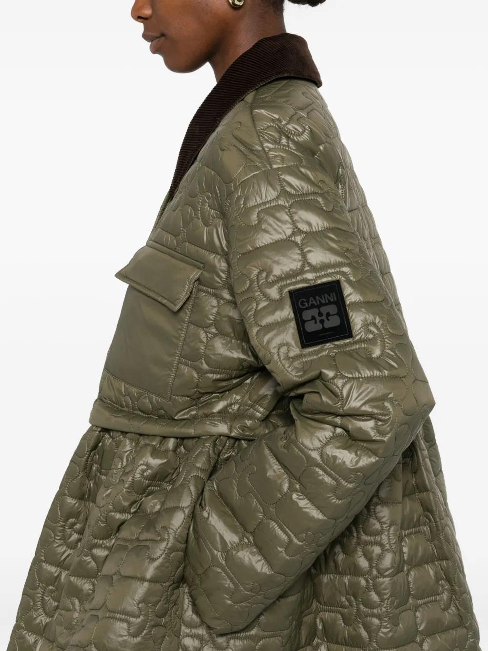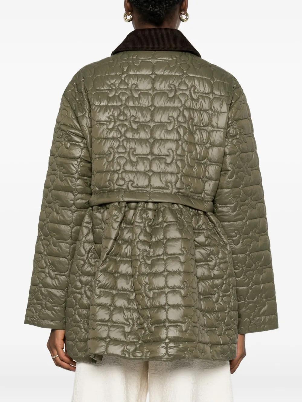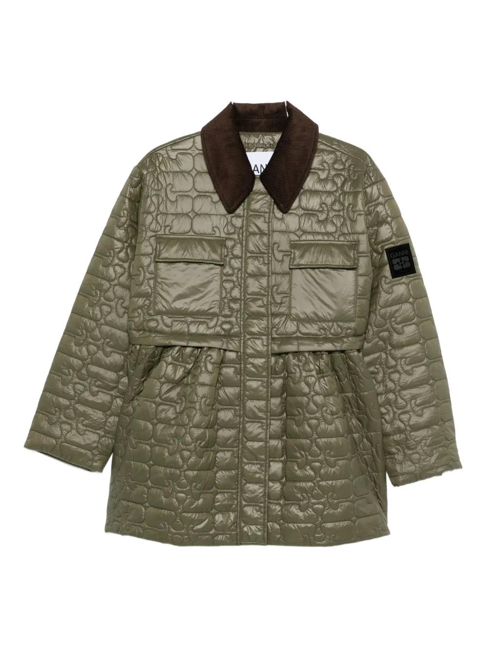 olive green corduroy collar two front pockets quilted elasticated hem logo patch