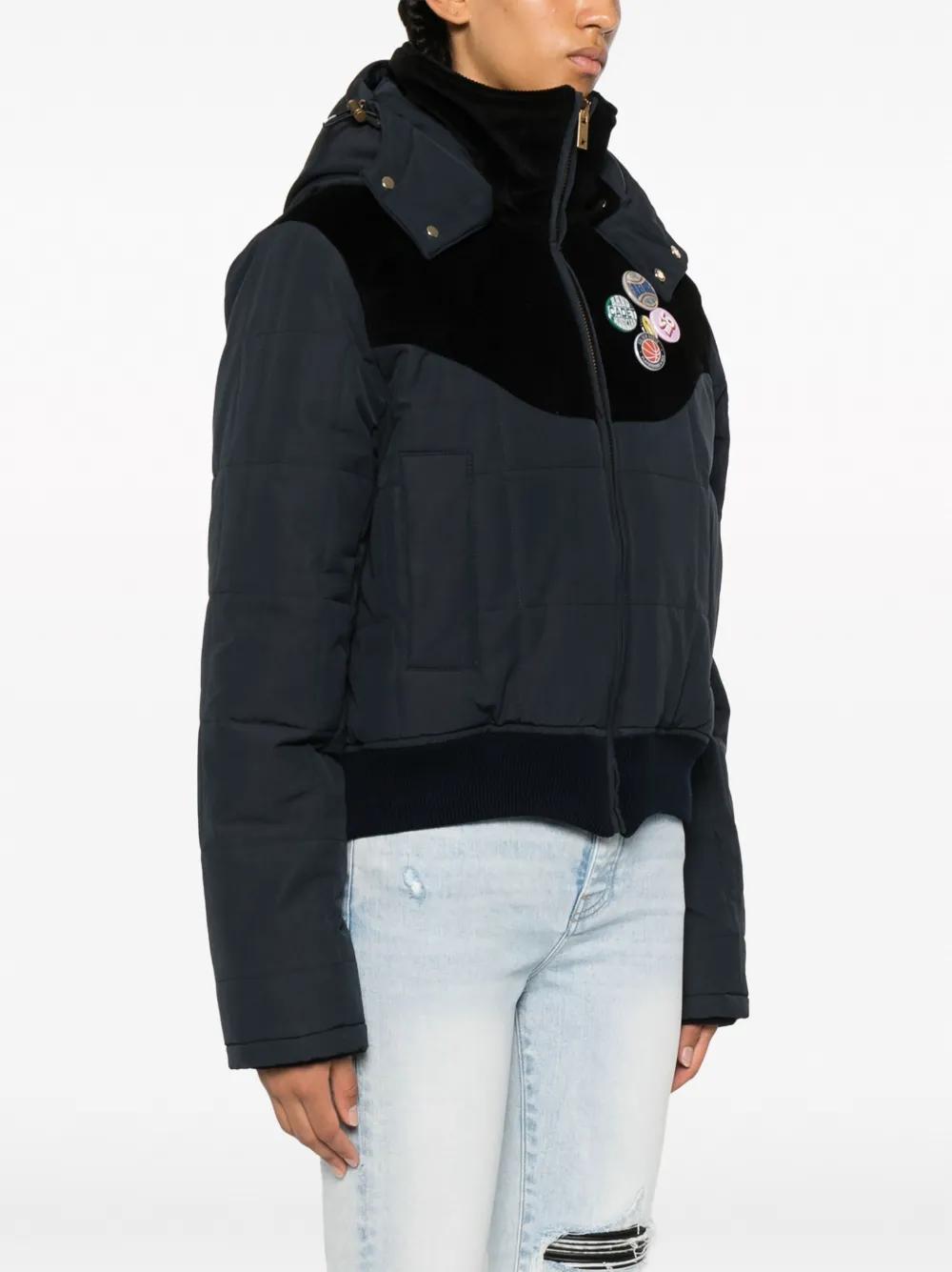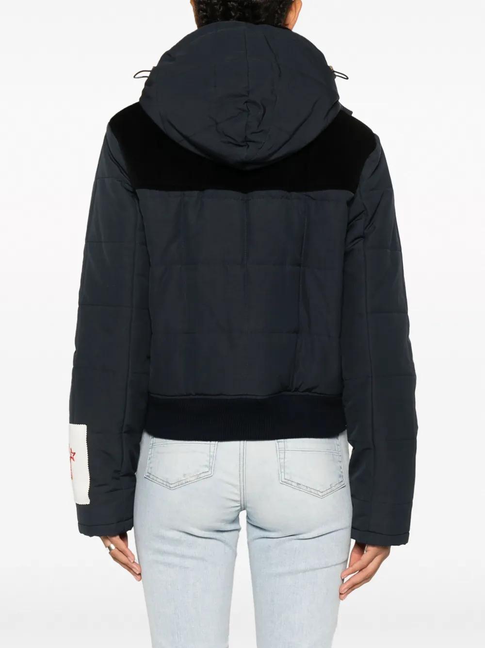 black/navy blue cotton blend wool blend panelled design logo patch at the sleeve detachable hood front zip fastening long sleeves two side slit pockets ribbed hem