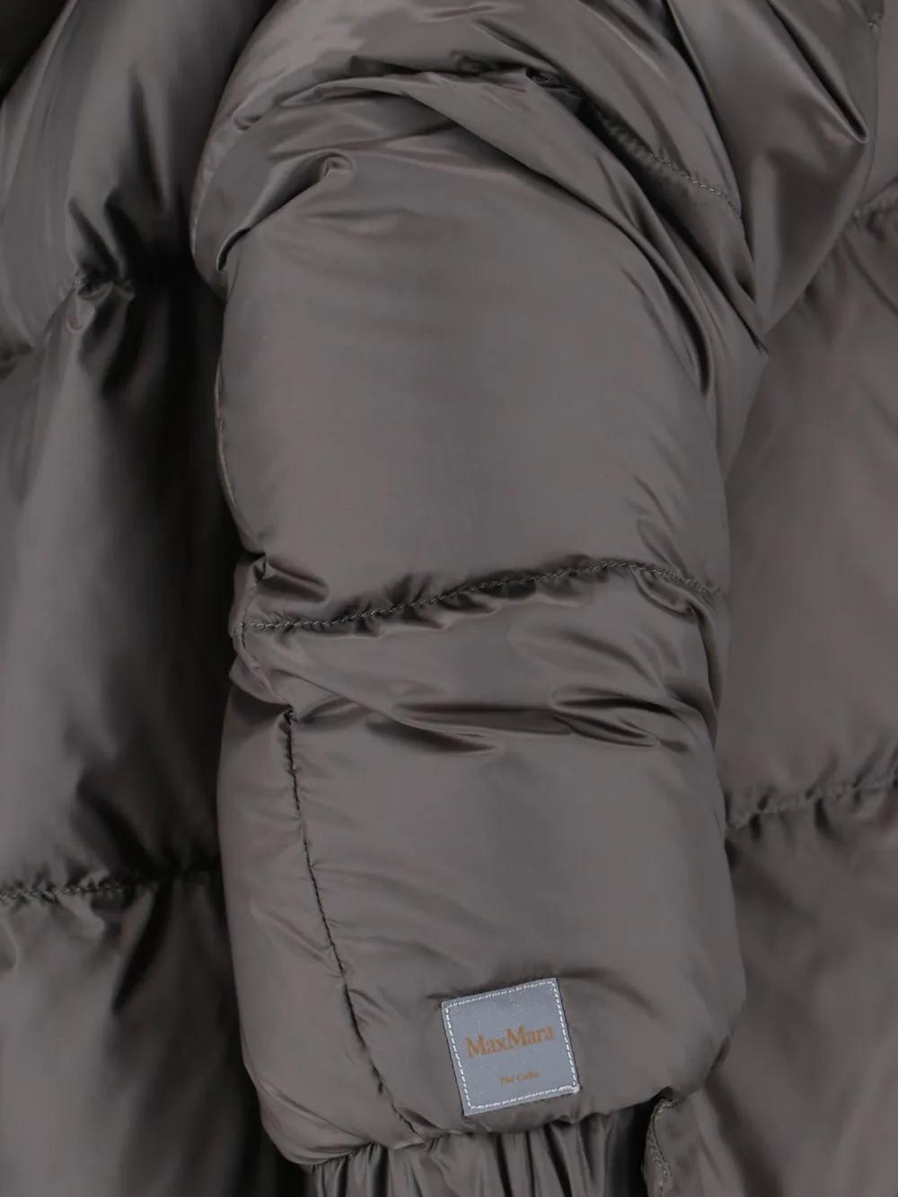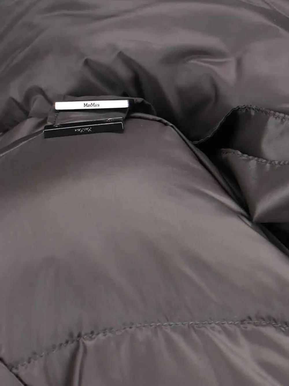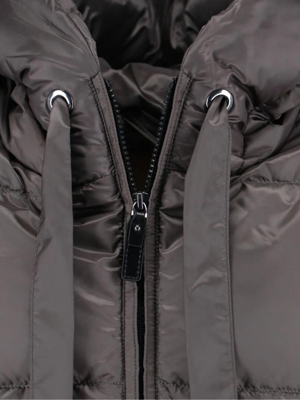 grey quilted design hooded neckline zip fastening drawstring hood long sleeves