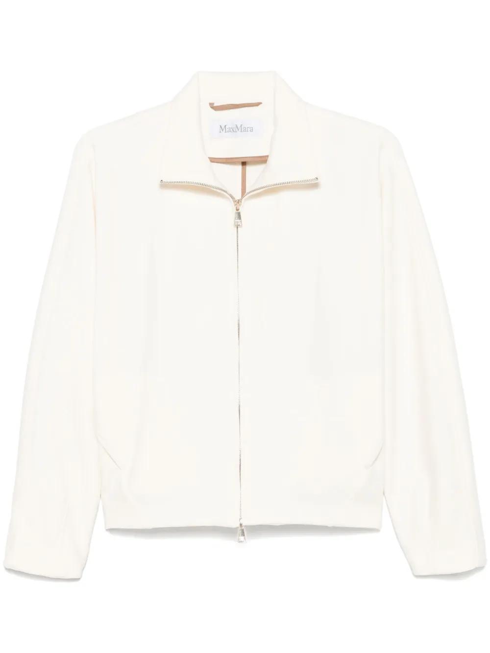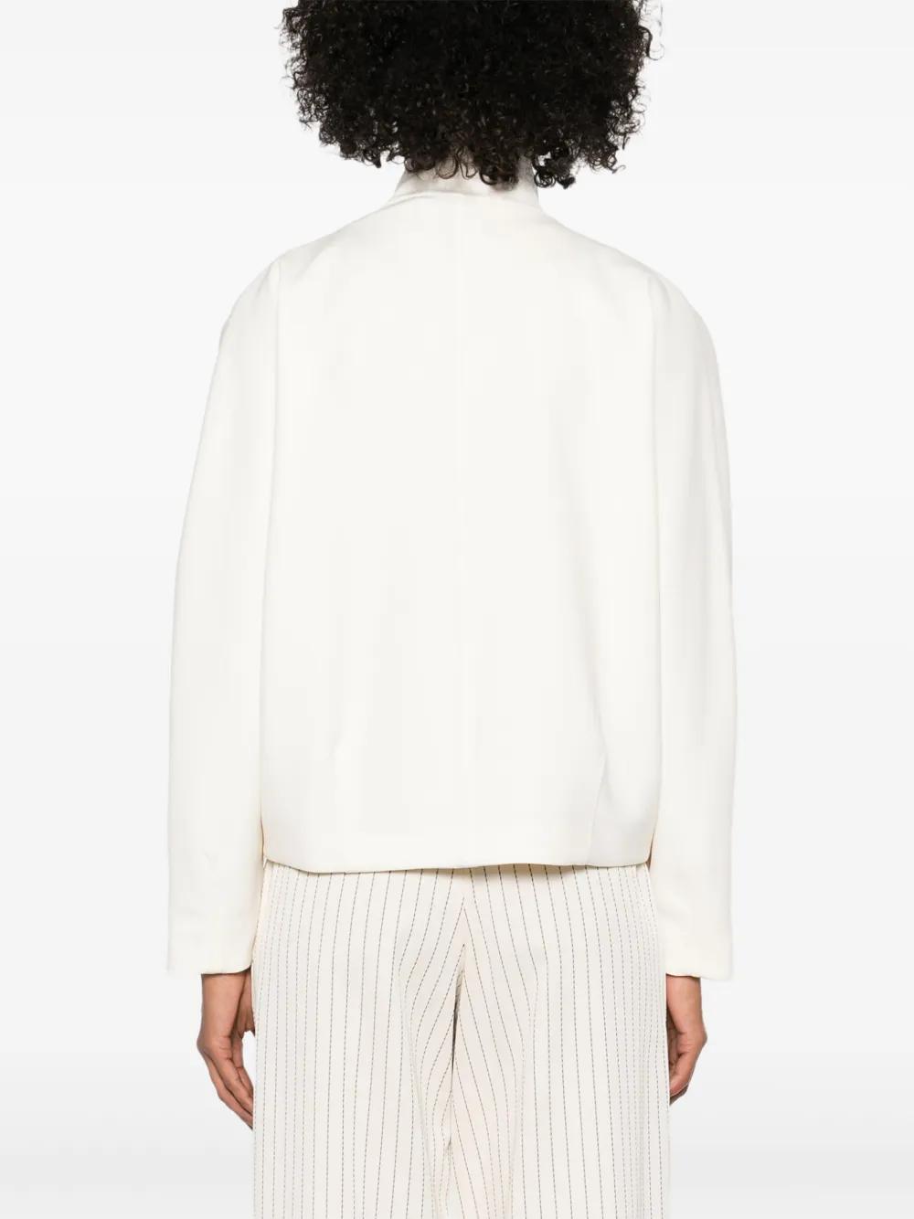 white front two-way zip fastening two side welt pockets high neck long sleeves