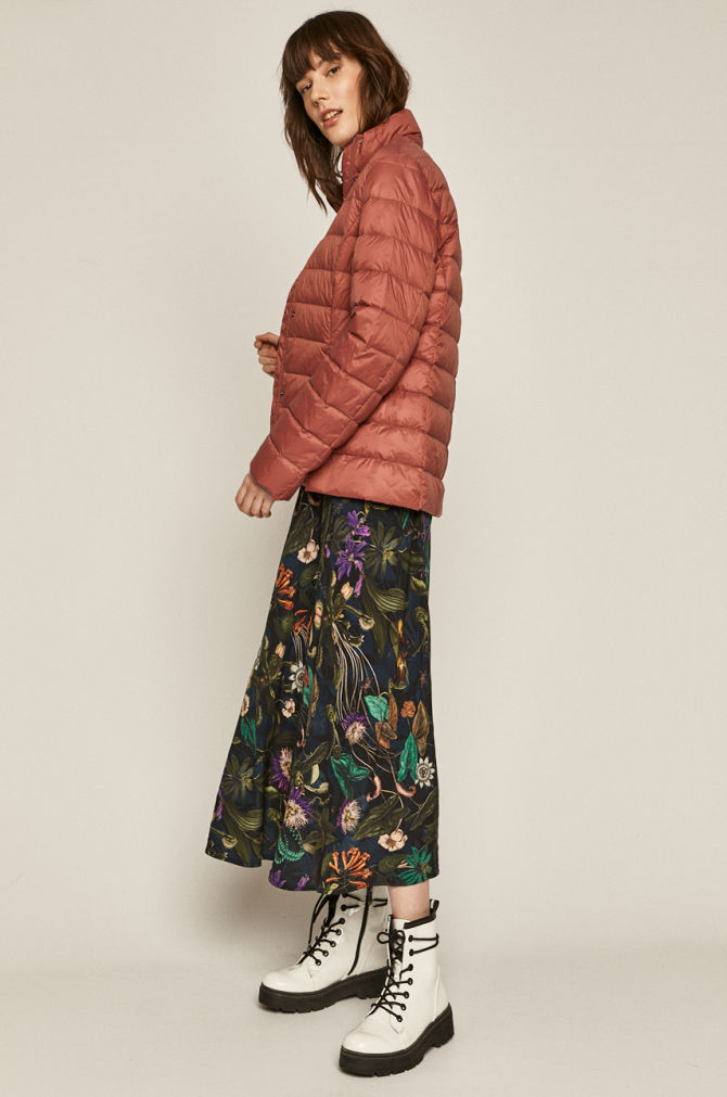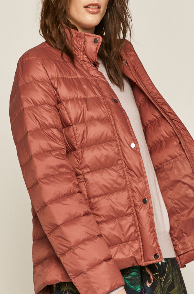 - Wypełnienie z naturalnego puchu i pierza. - Ocieplony model na podszewce. - Prosty fason. - Zapinane kieszenie. - Zapięcie na suwak i zatrzaski. - Długość rękawa: 61 cm. - Długość: 65 cm. - Szerokość pod pachami: 49 cm. - Szerokość w ramionach: 39 cm. - Wymiary podane dla rozmiaru: S.