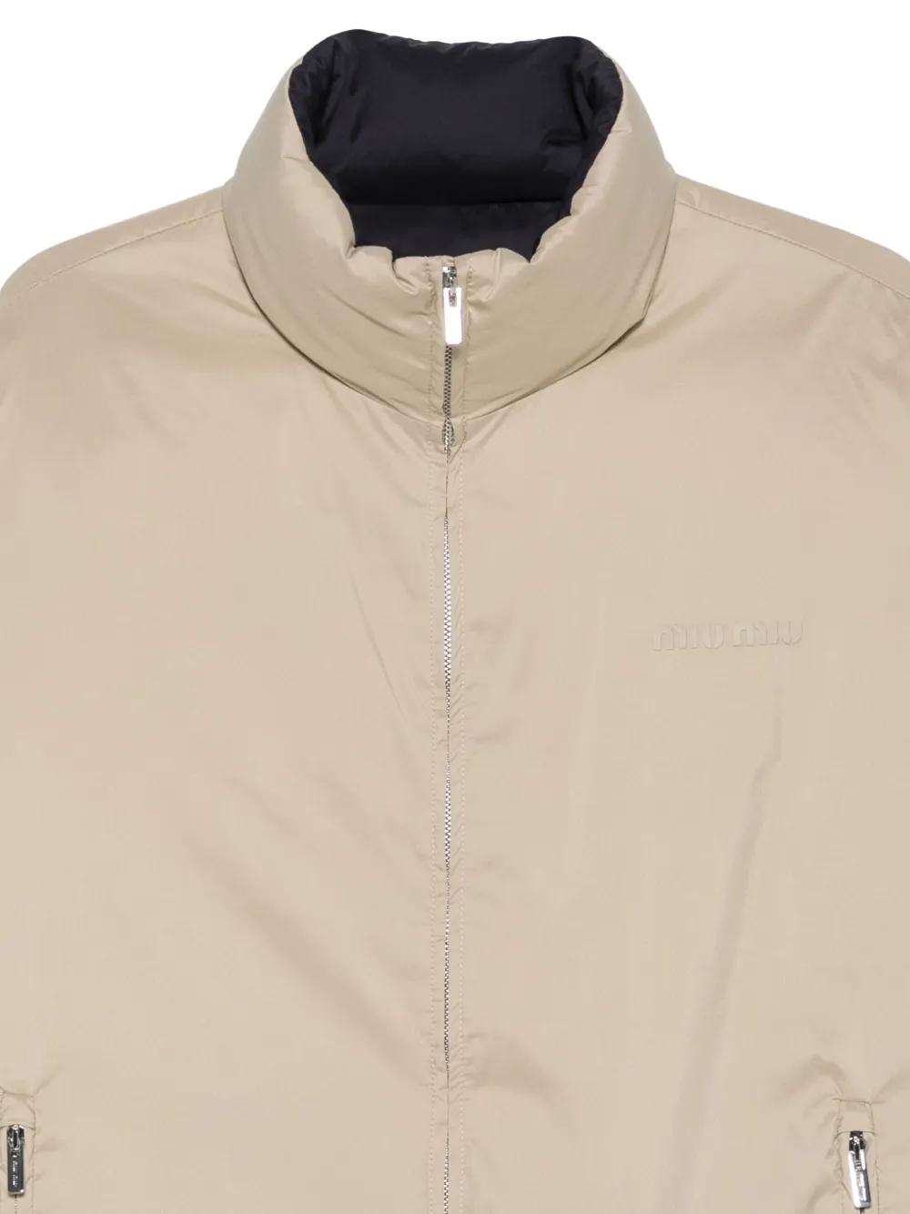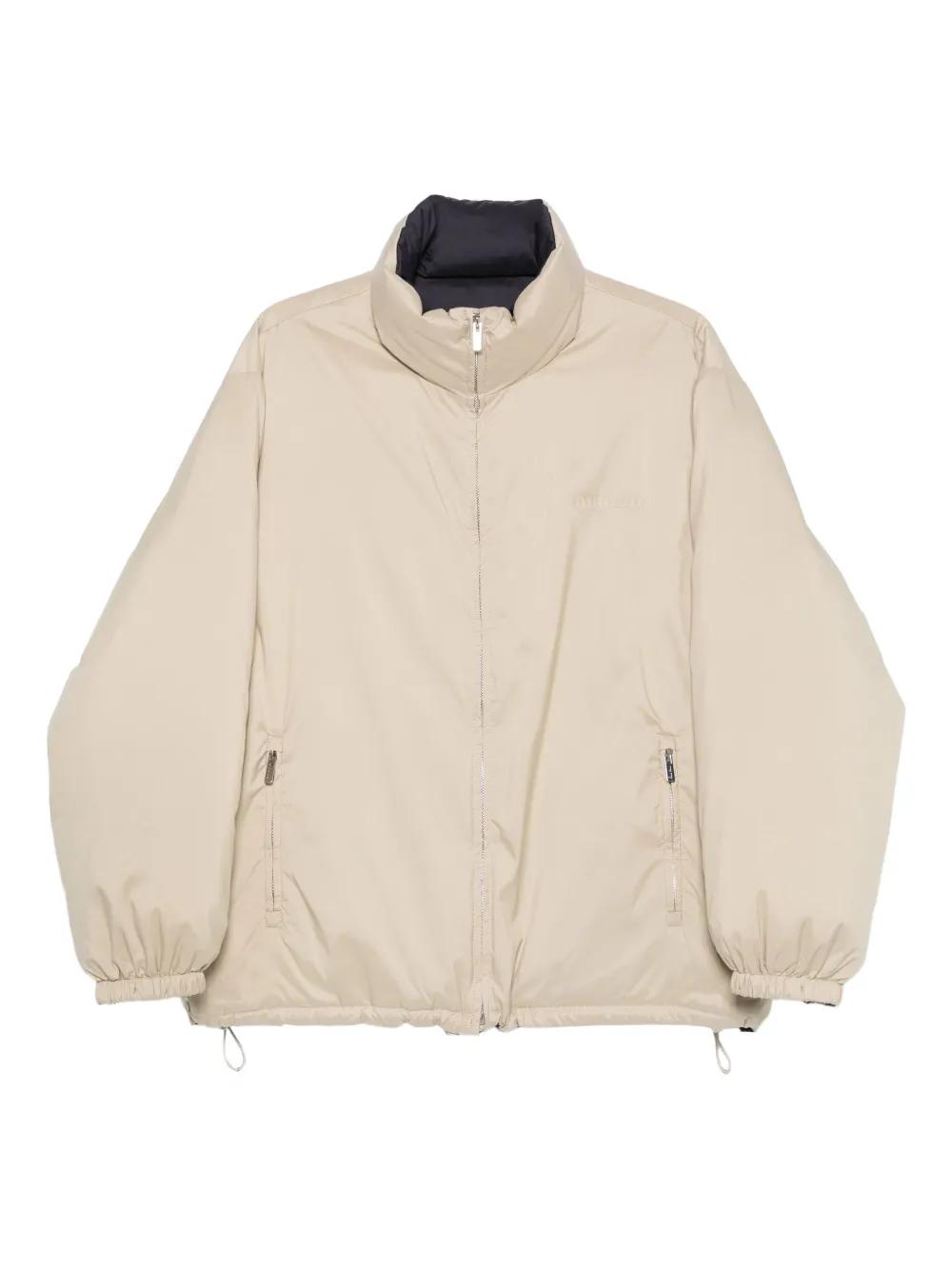 beige zip fastening high neck cuffed sleeves drawstring hem zipped pockets