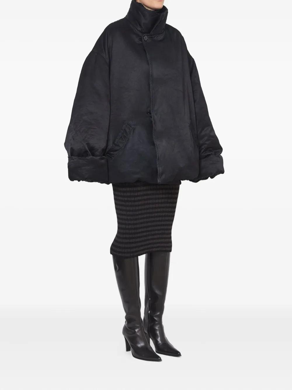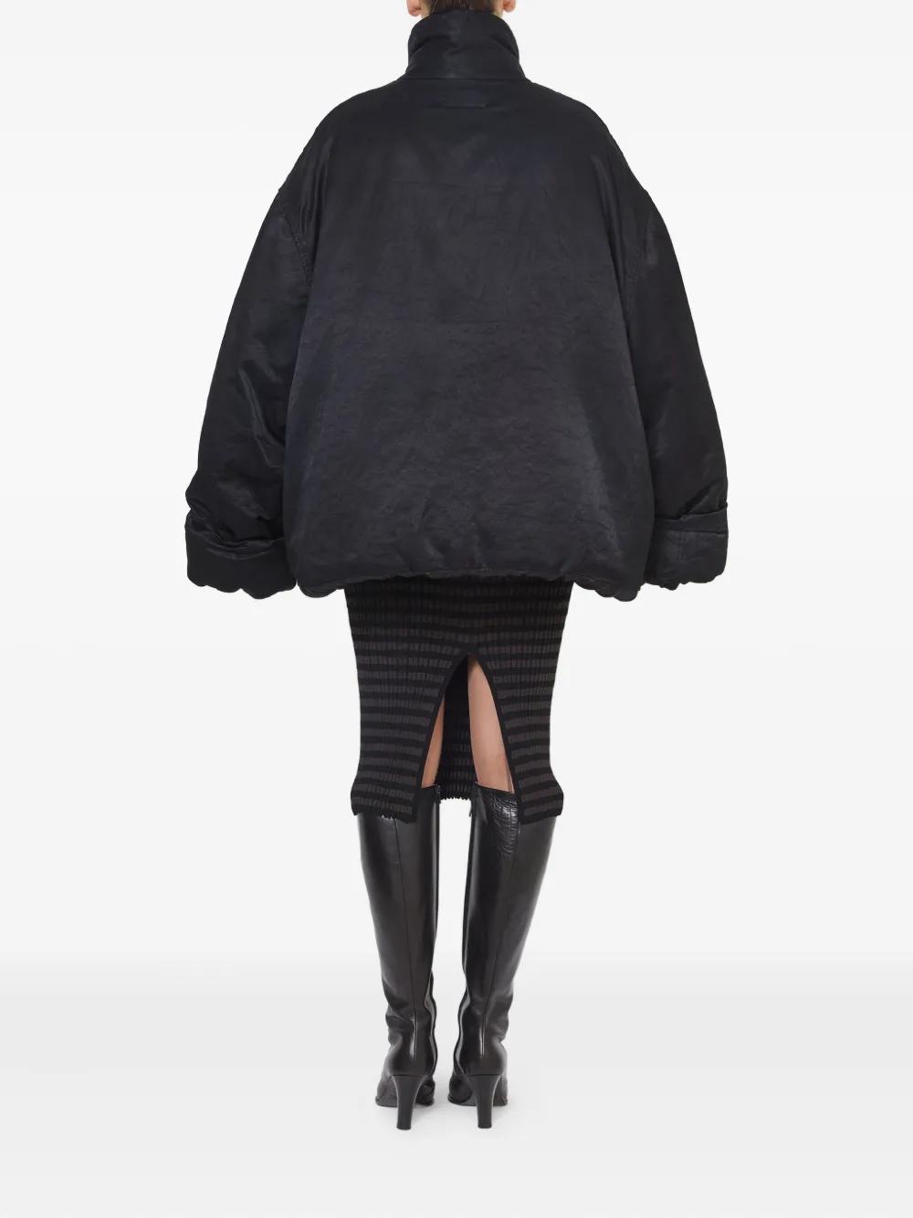 black funnel neck design snap button closure side pockets voluminous sleeves