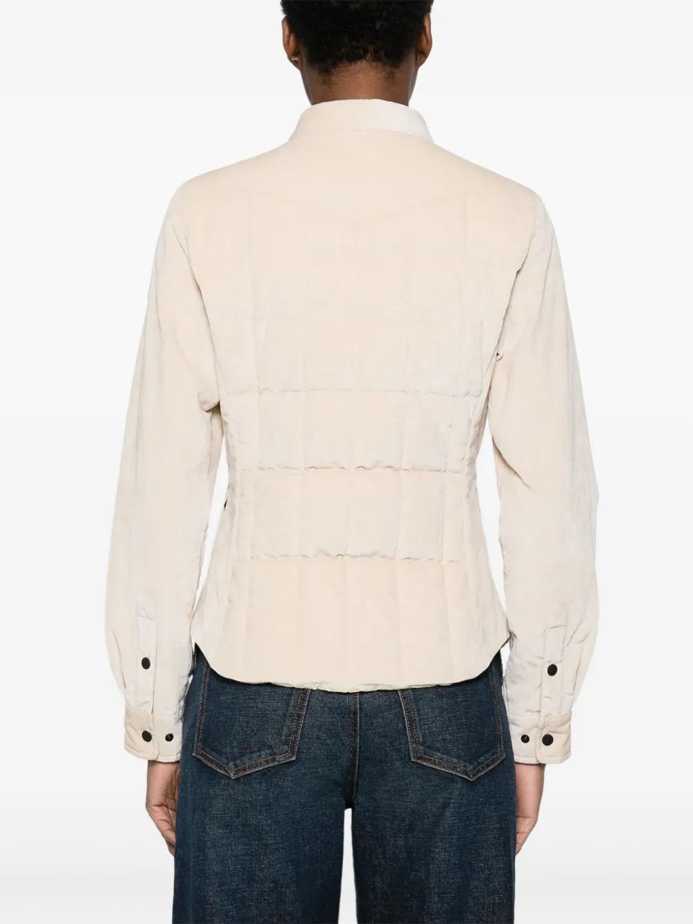 light beige corduroy front button fastening chest flap pockets long sleeves quilted