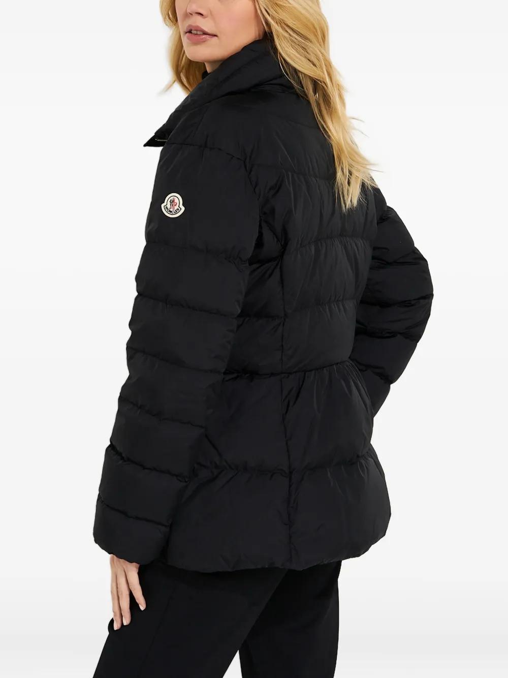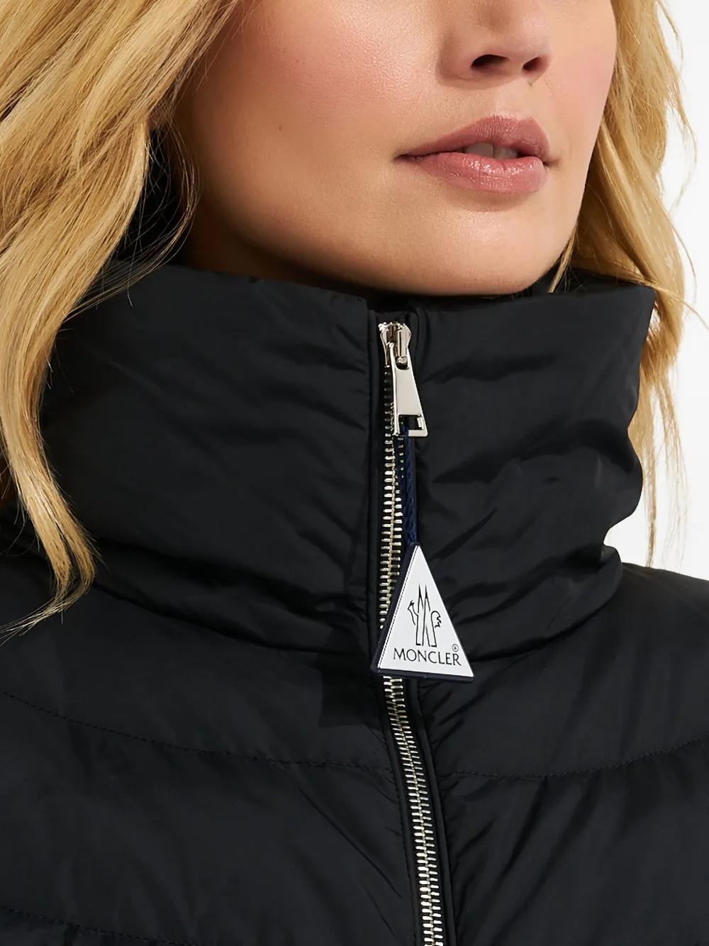 black zip fastening drawstring hood side zip pockets long sleeves ribbed cuffs and hem