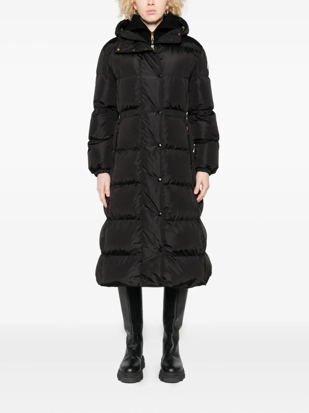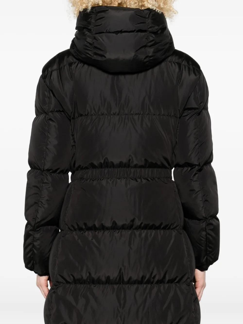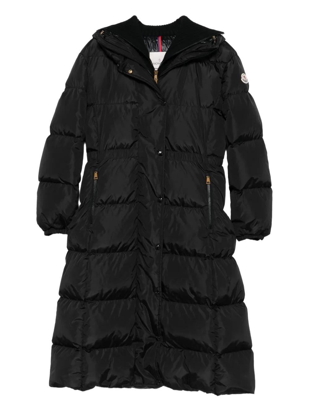 black quilted design hooded neckline zip and button fastening long sleeves zip fastening pockets