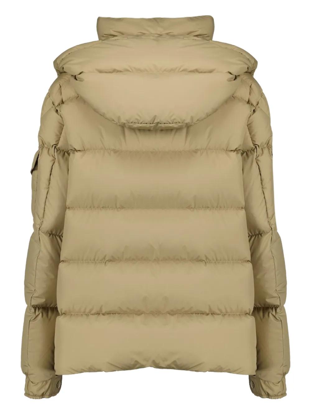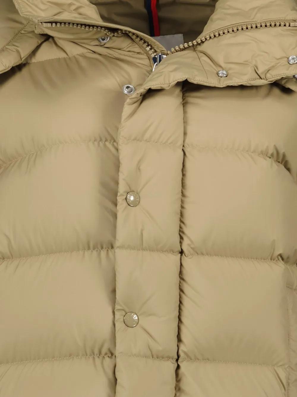beige padded design detachable hood zip and press-stud fastening long sleeves flap pocket on sleeve