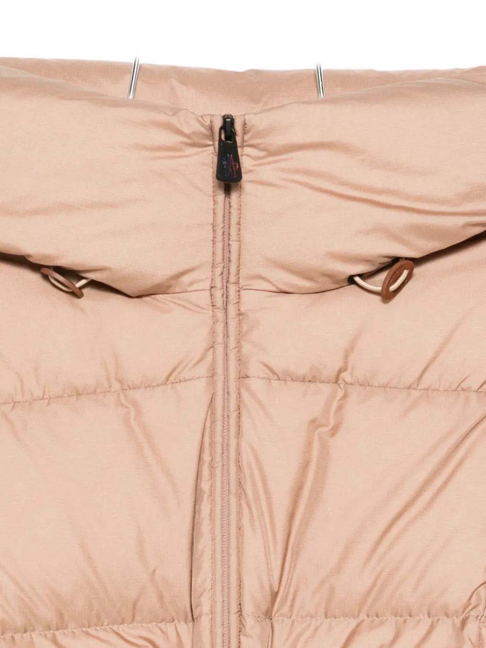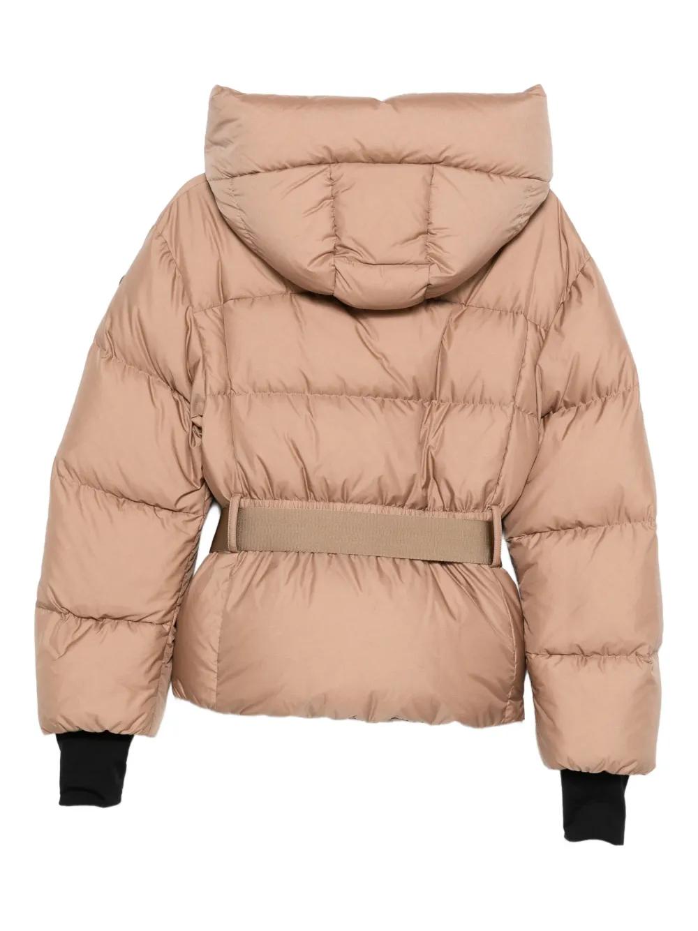 beige detachable belt high neck front zip fastening long sleeves elasticated cuffs