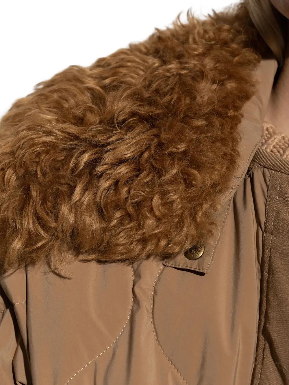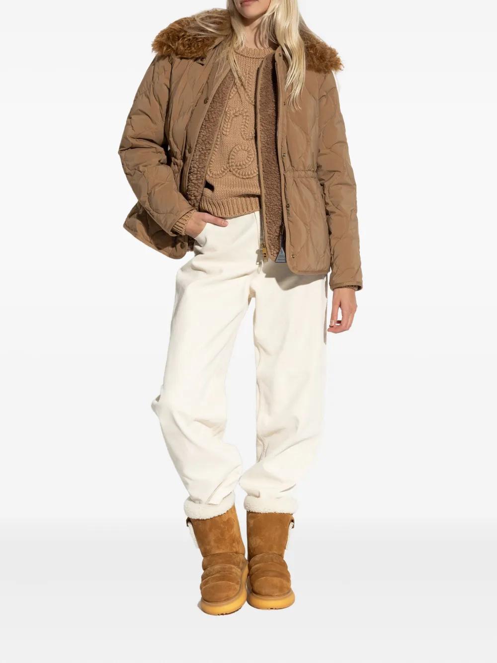 beige quilted shearling trim press-stud and zip fastening welt pockets