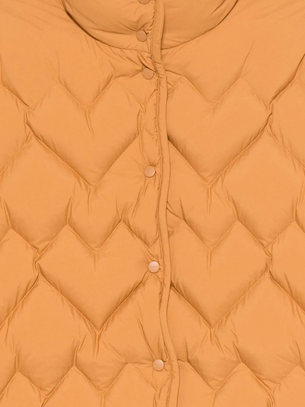 dark yellow quilted high neck front button fastening long sleeves straight hem