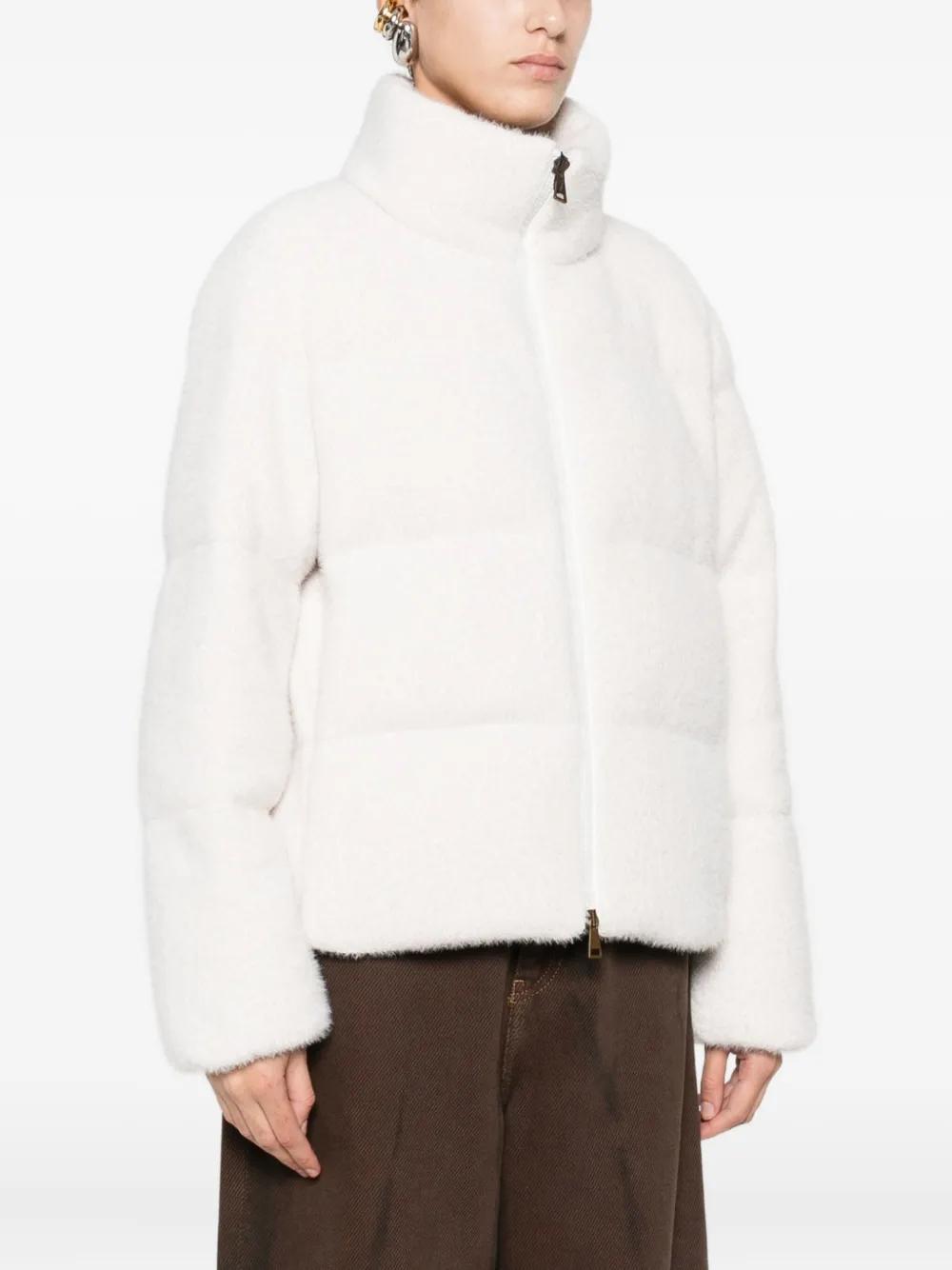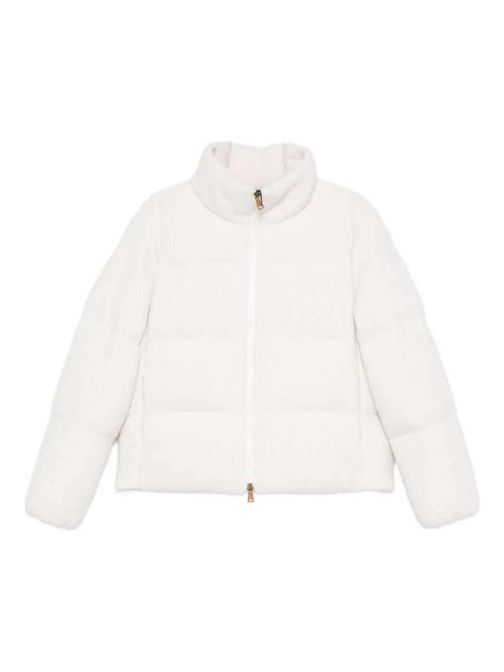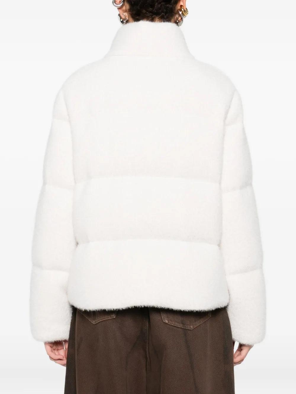 off-white padded design high neck front zip fastening long sleeves straight hem