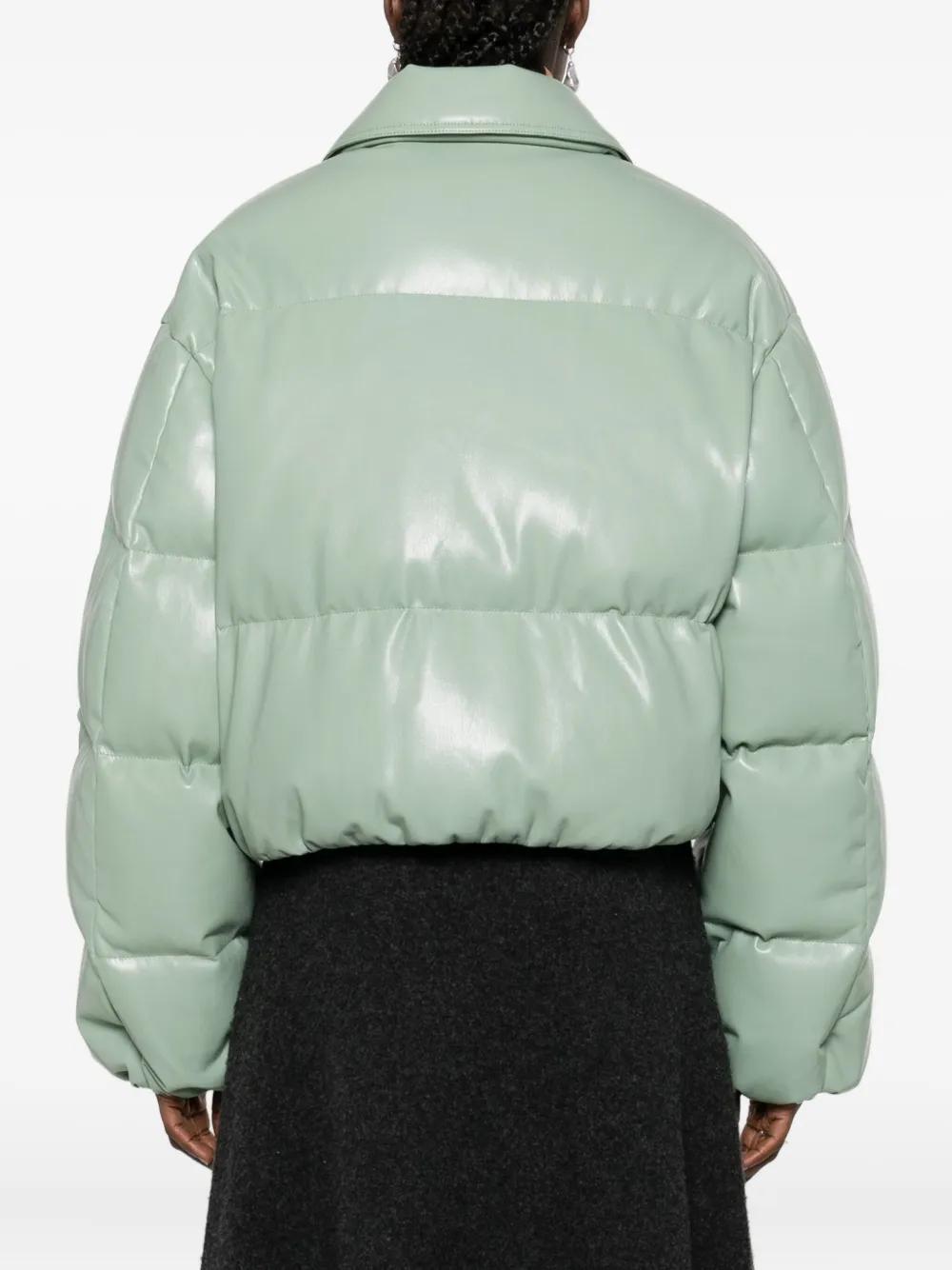 green quilted design zip fastening collared neckline long sleeves welt pockets