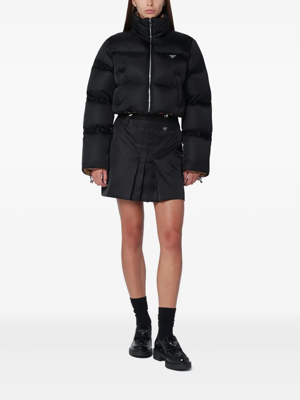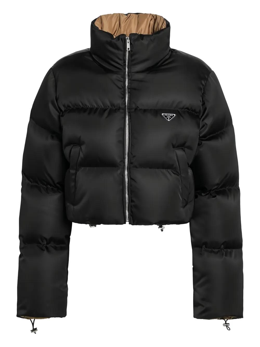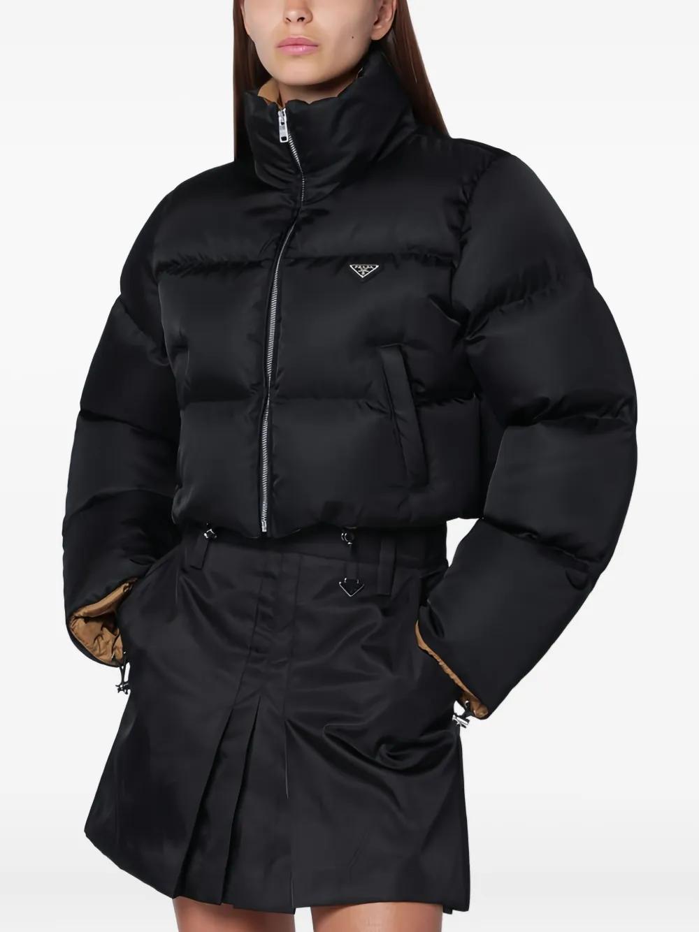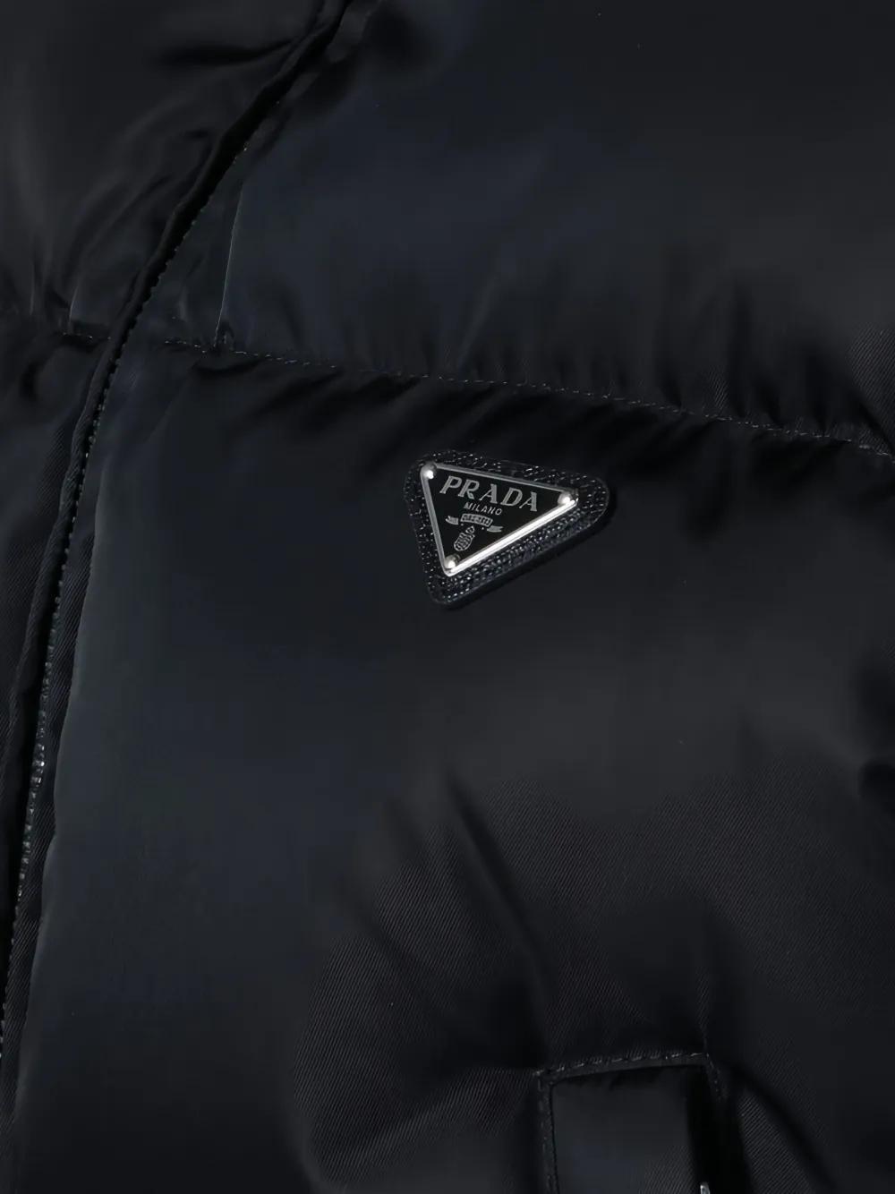 black funnel neck logo plaque long sleeves front zip fastening drawstring hem