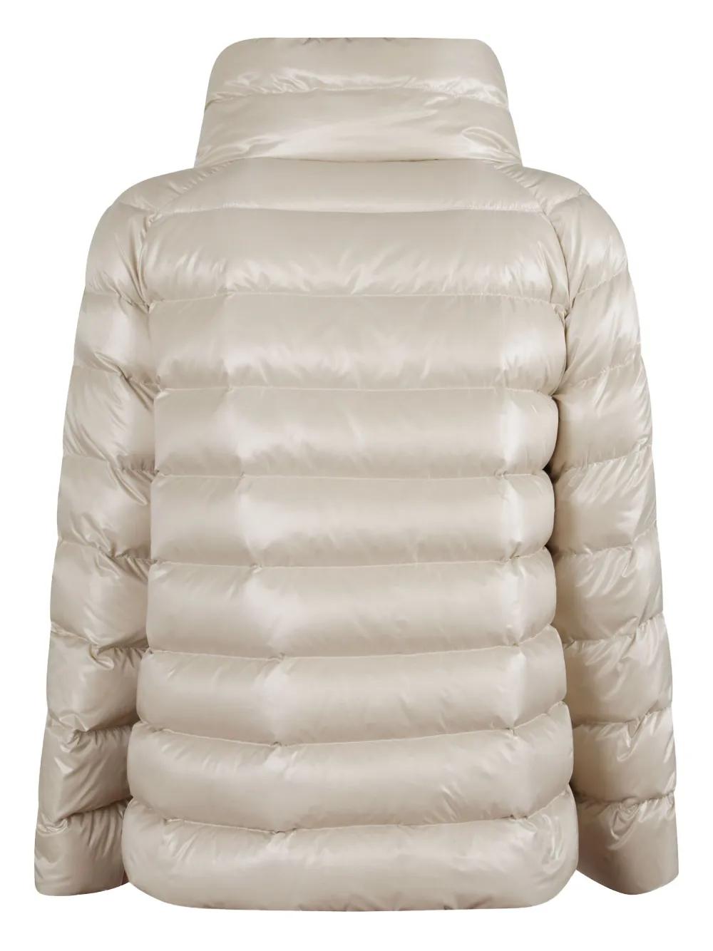 beige detachable belt high neck front zip fastening long sleeves elasticated cuffs
