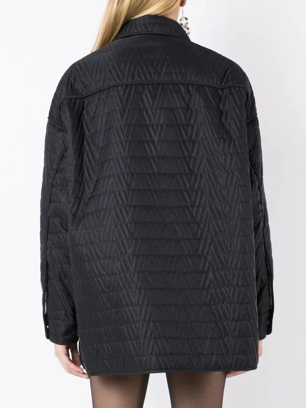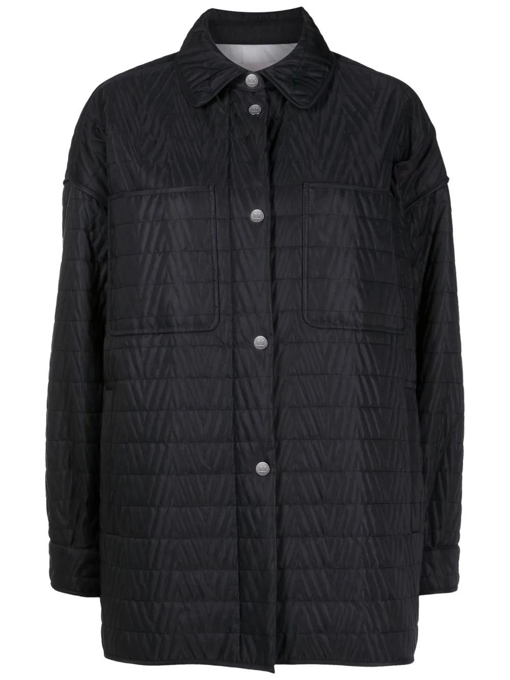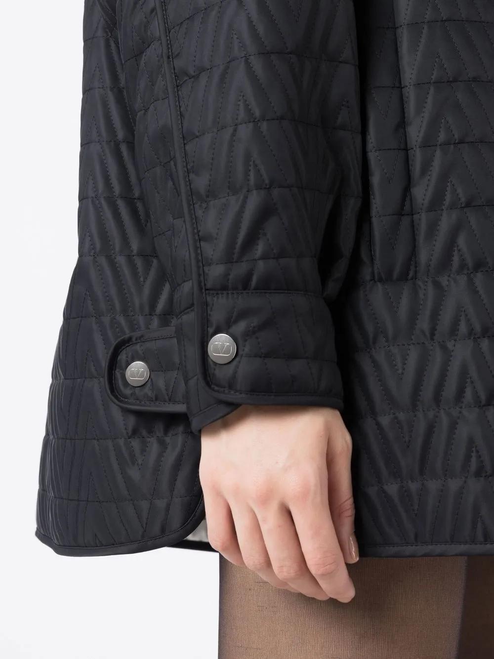 Valentino Ready To Wear black chevron quilting front press-stud and zip fastening rounded collar two chest patch pockets two side welt pockets press-stud fastening cuffs long sleeves straight hem