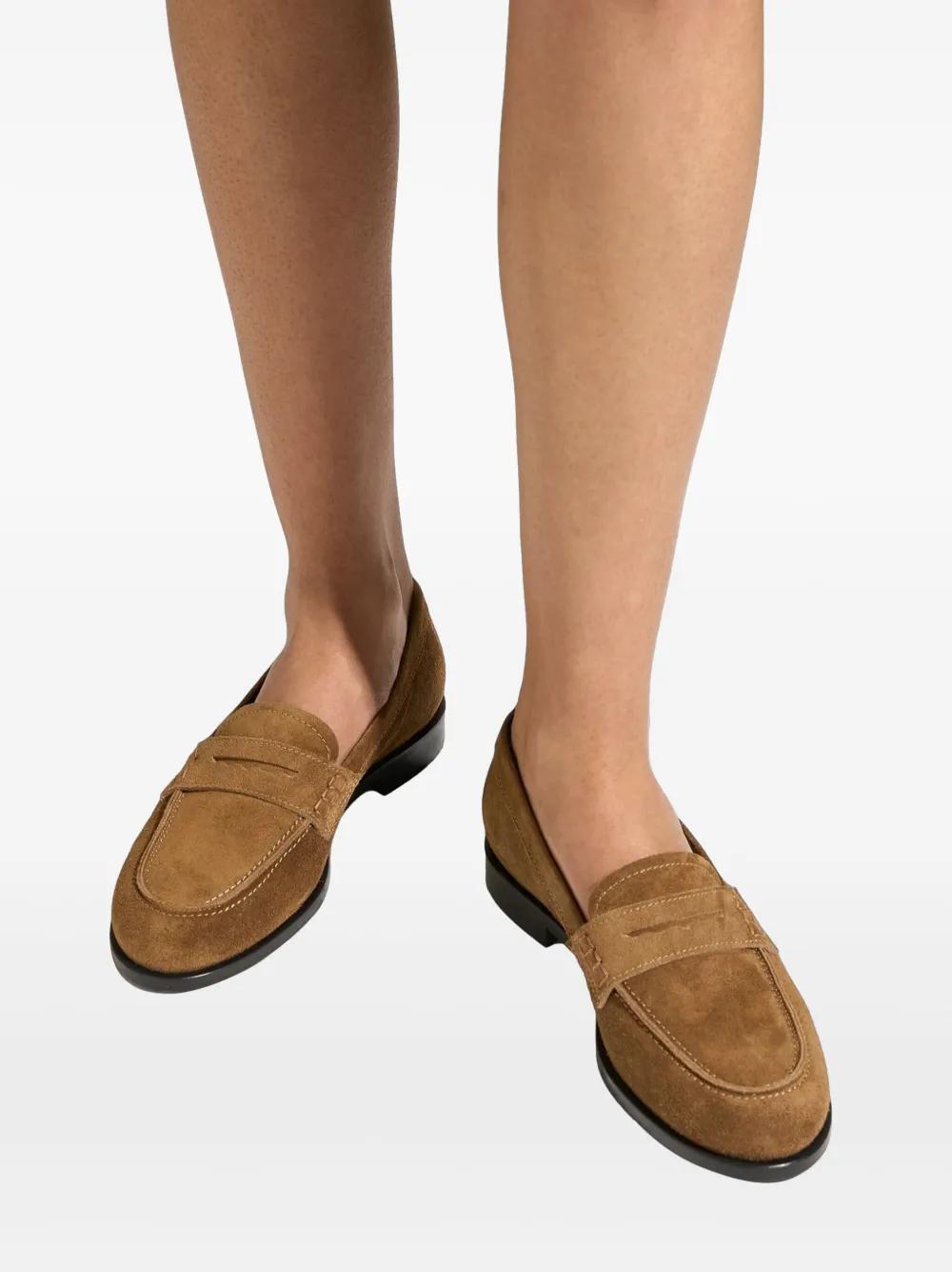 beige suede signature gold-tone Horsebit detail almond toe slip-on style branded leather insole low stacked heel leather outsole This piece comes complete with a protective dust bag.