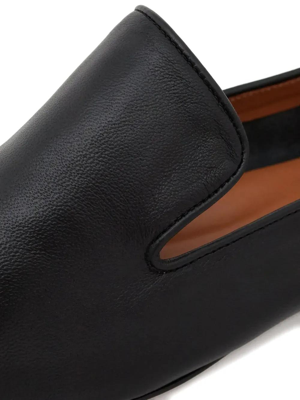 black leather upper low heel slip-on style leather sole
