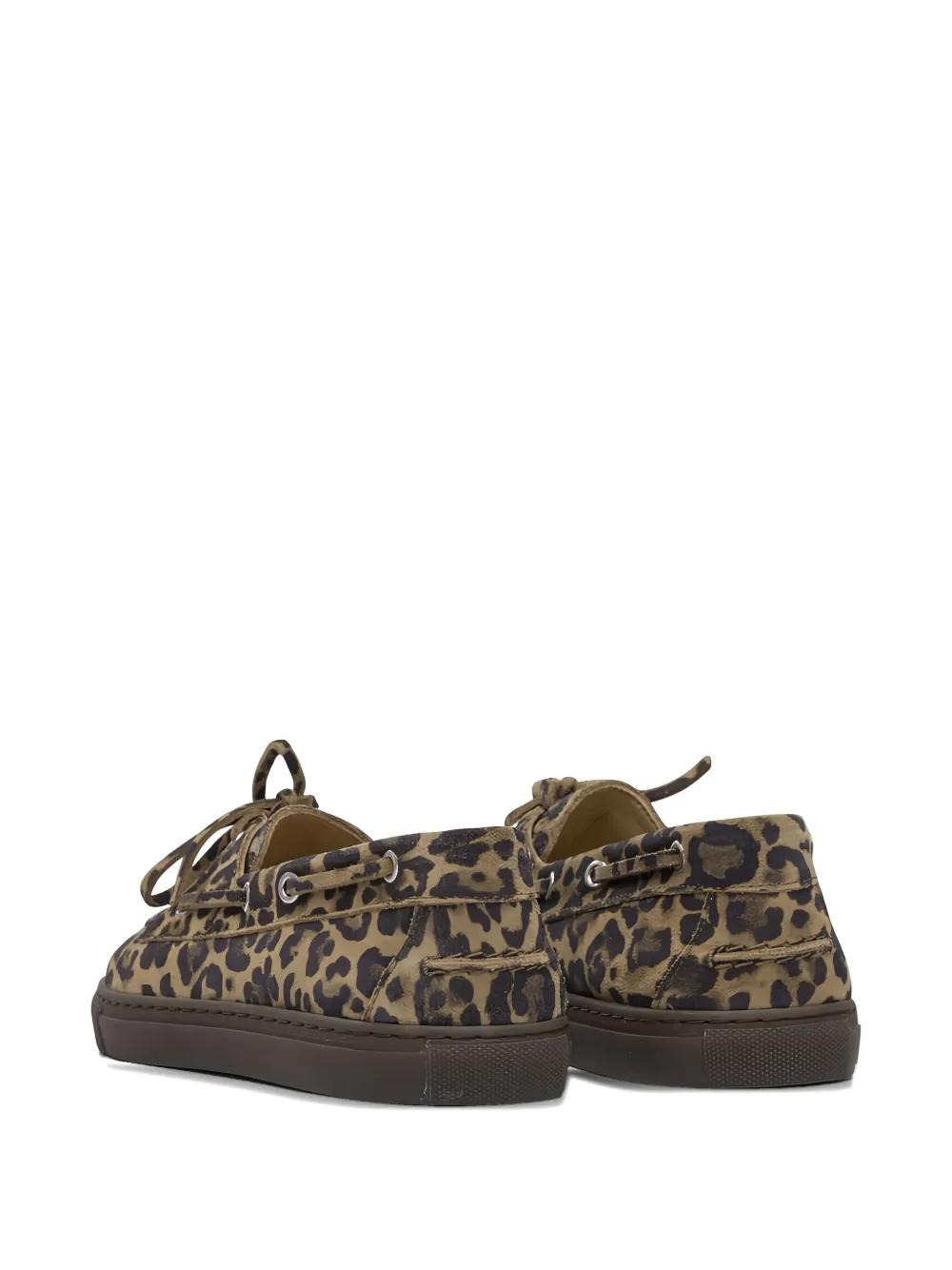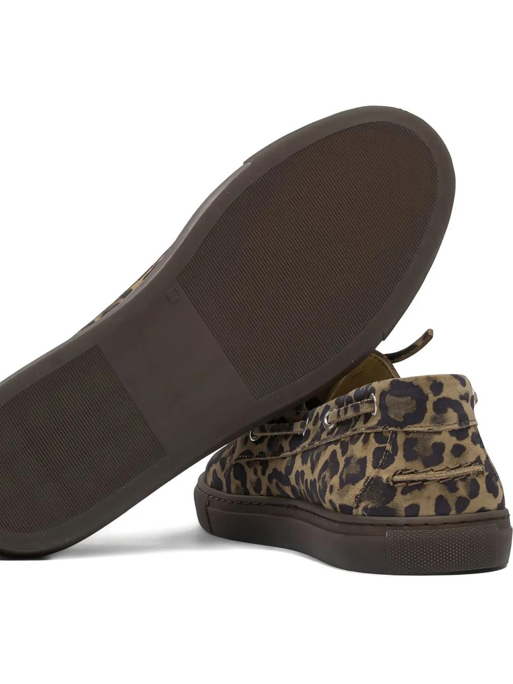brown leather leopard print lace-up fastening rubber sole