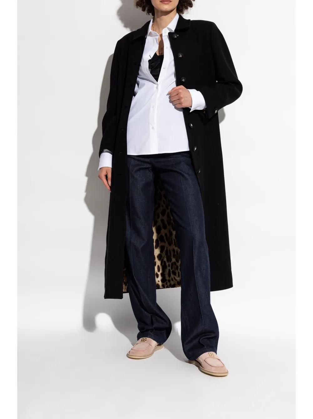 blush pink calf suede shearling lining gold-tone logo lettering apron toe round toe branded leather insole flat rubber sole