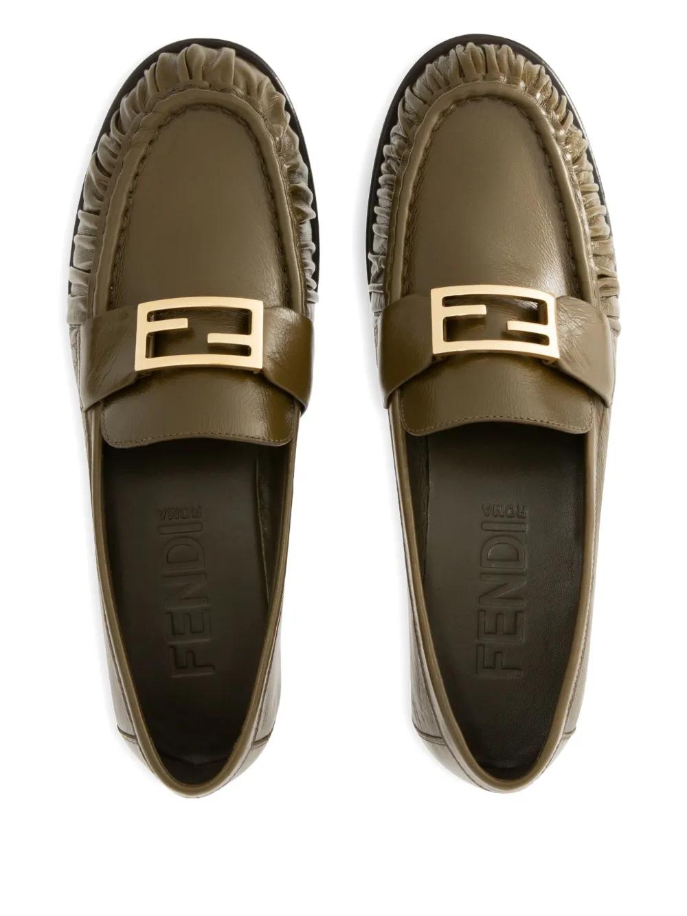 olive gold-tone hardware ruched detailing slip-on style flat sole leather construction