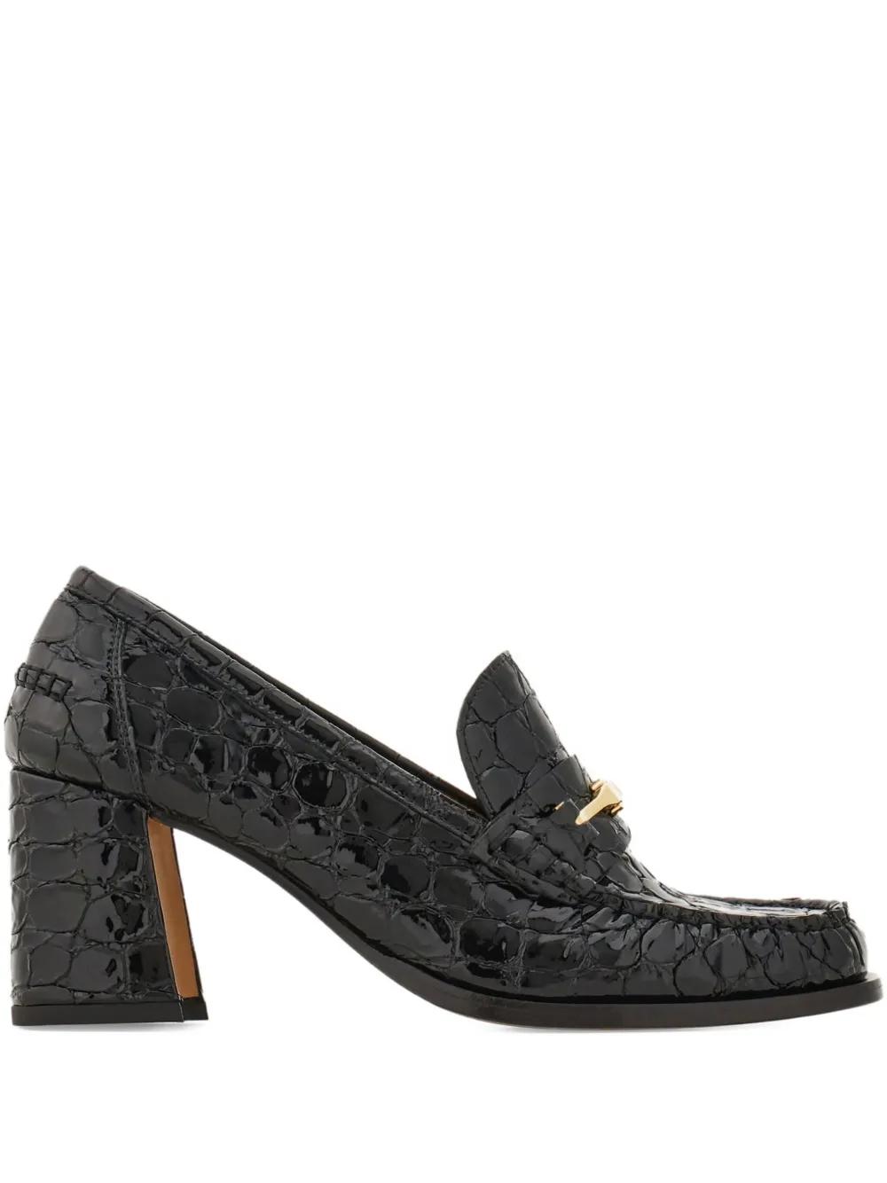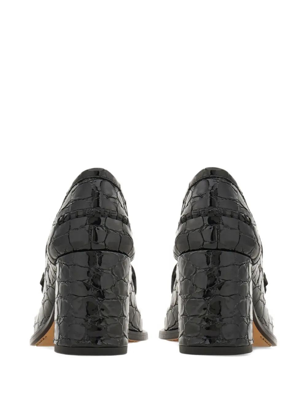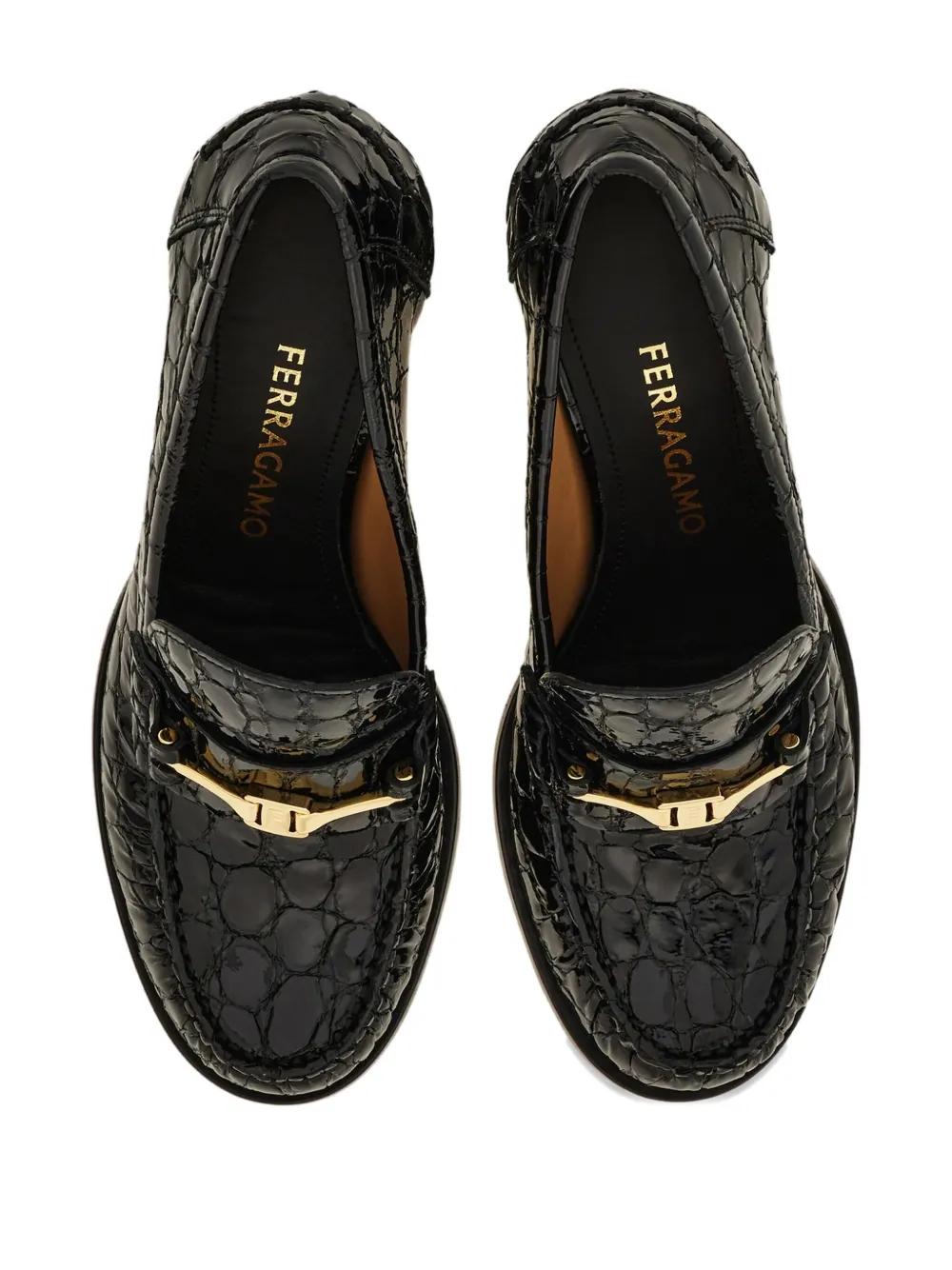 black calf leather embossed crocodile effect slip-on style signature Love Birds plaque almond toe branded leather insole rubber sole