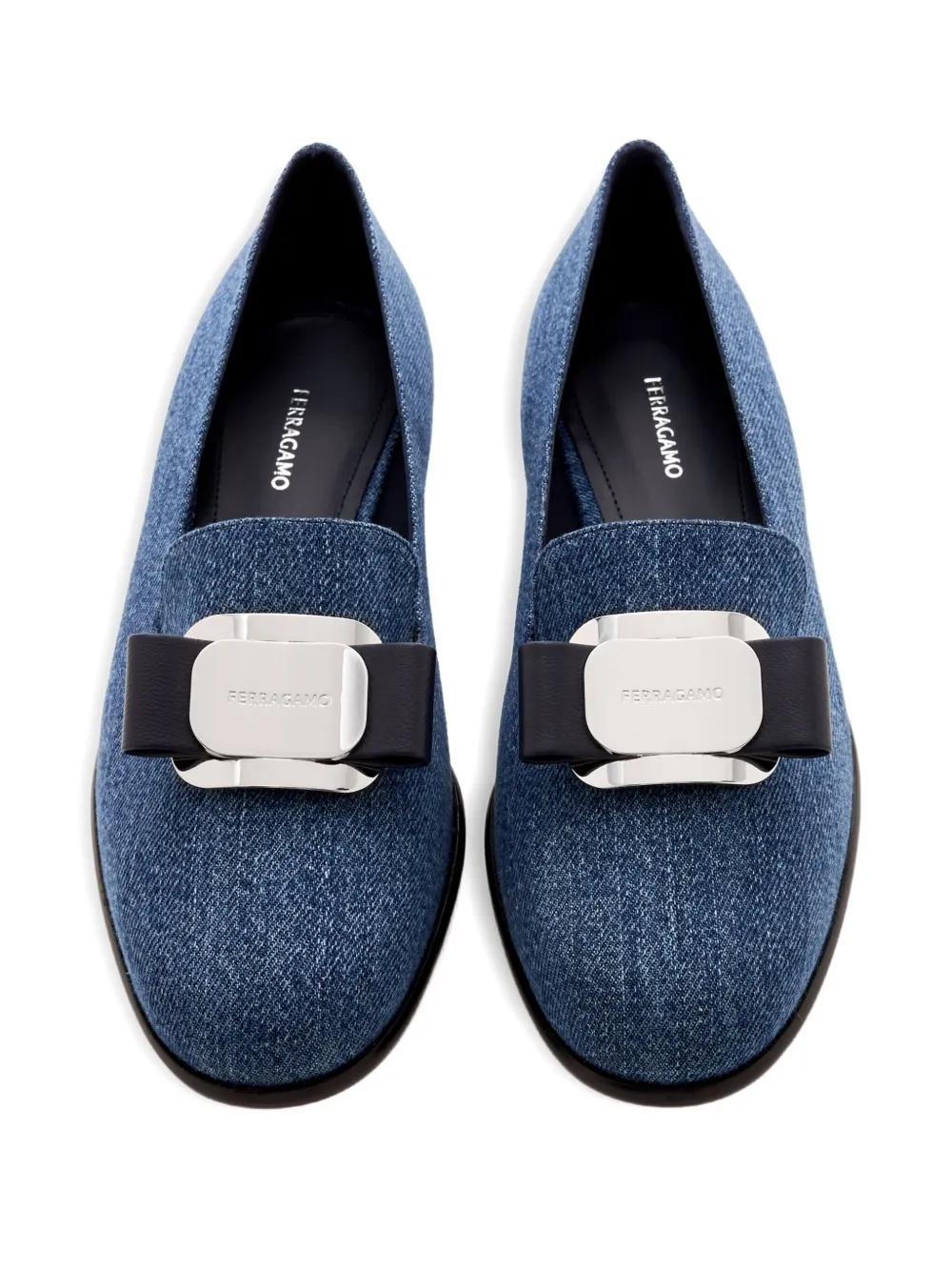 Ferragamo buckle-detailed denim loafers - Blue