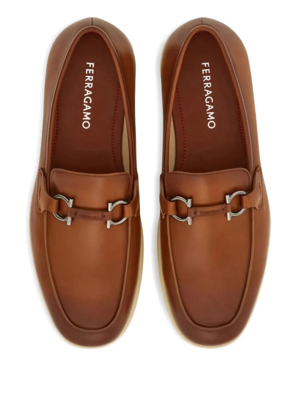 brown leather Gancini detail slip-on style rubber sole rounded toe
