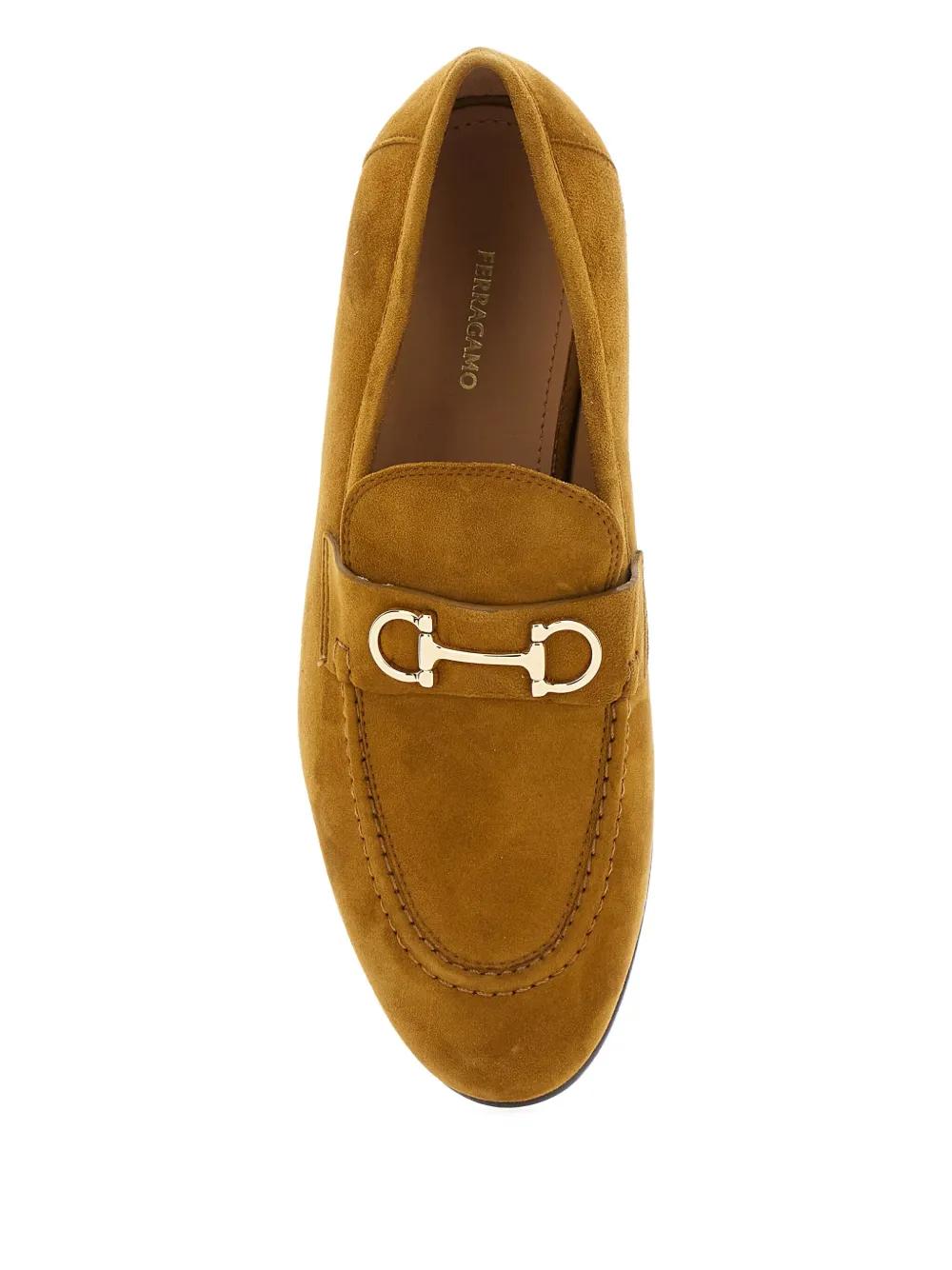 brown suede upper low heel Gancini detail slip-on style almond toe