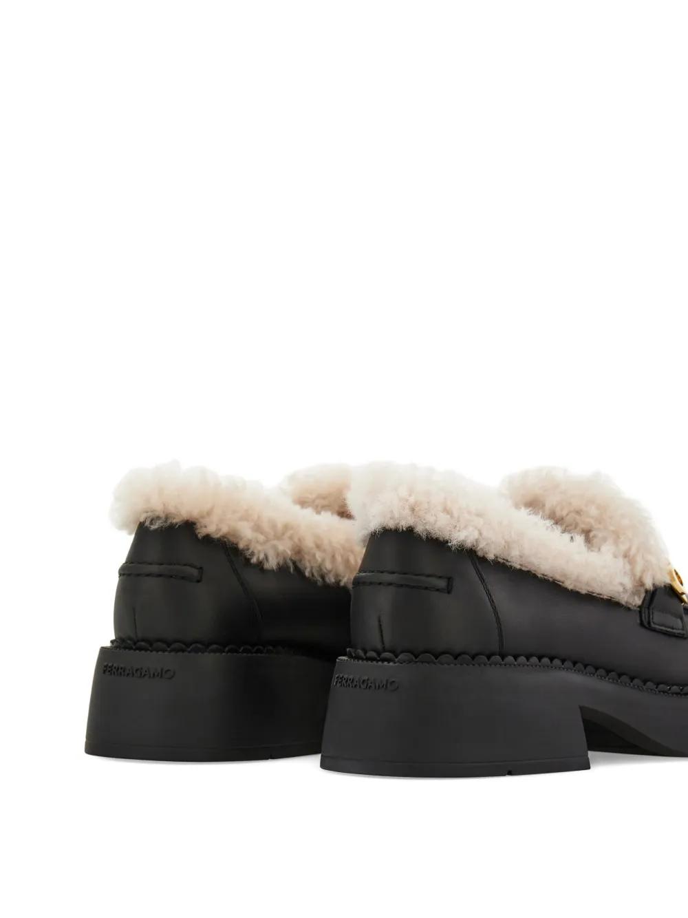 black shearling trim Hug buckle calfskin leather chunky rubber sole