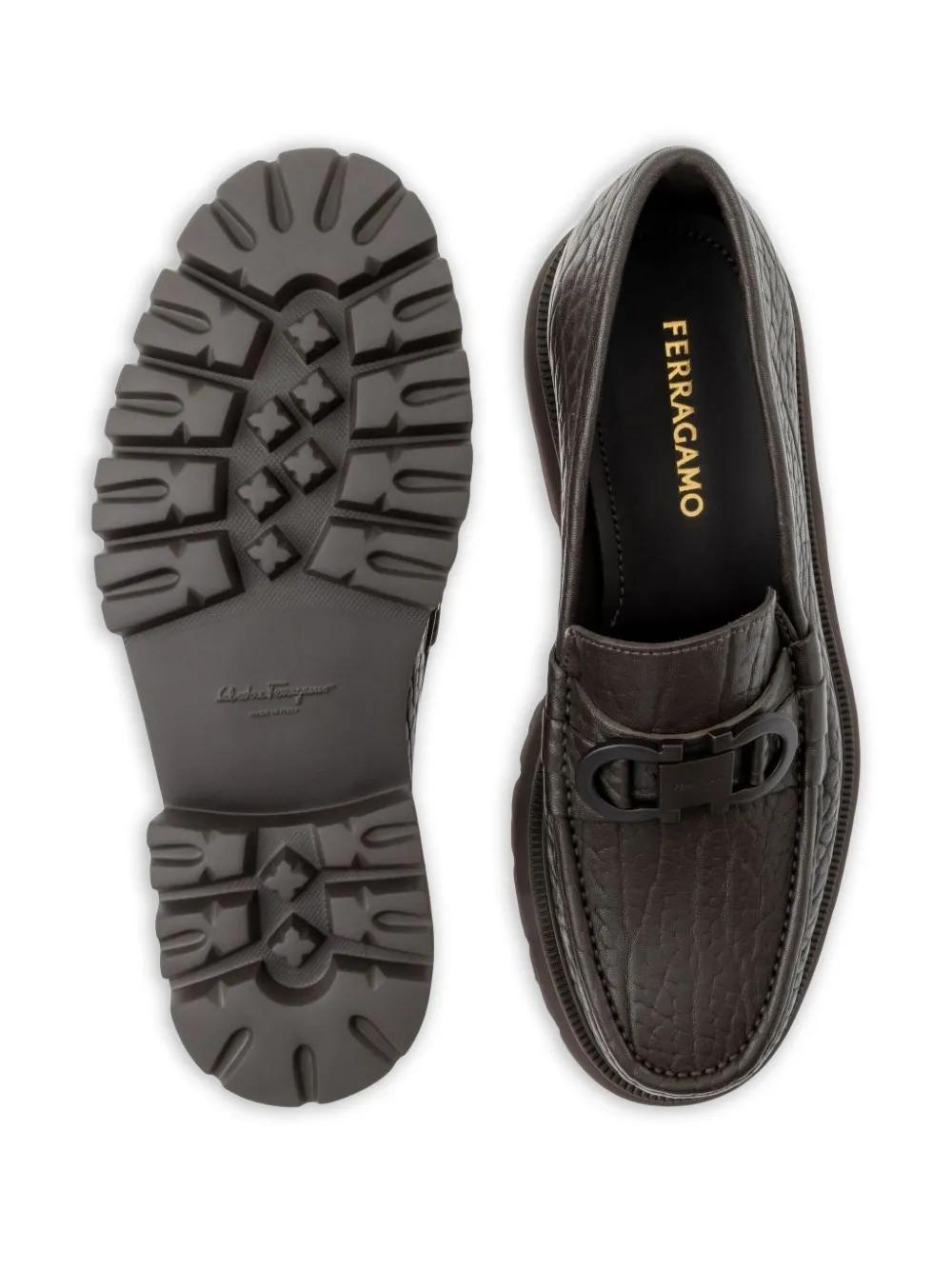 cedar brown slip-on style Gancini buckle rubber sole branded insole