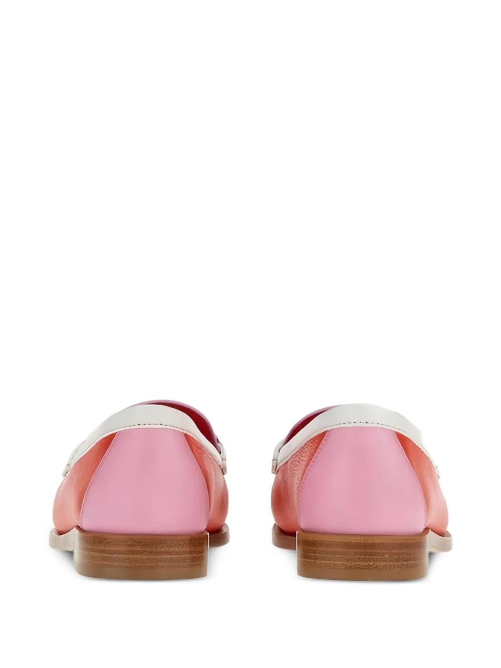 pink contrasting panel decorative stitching logo embellishment branded footbed round toe