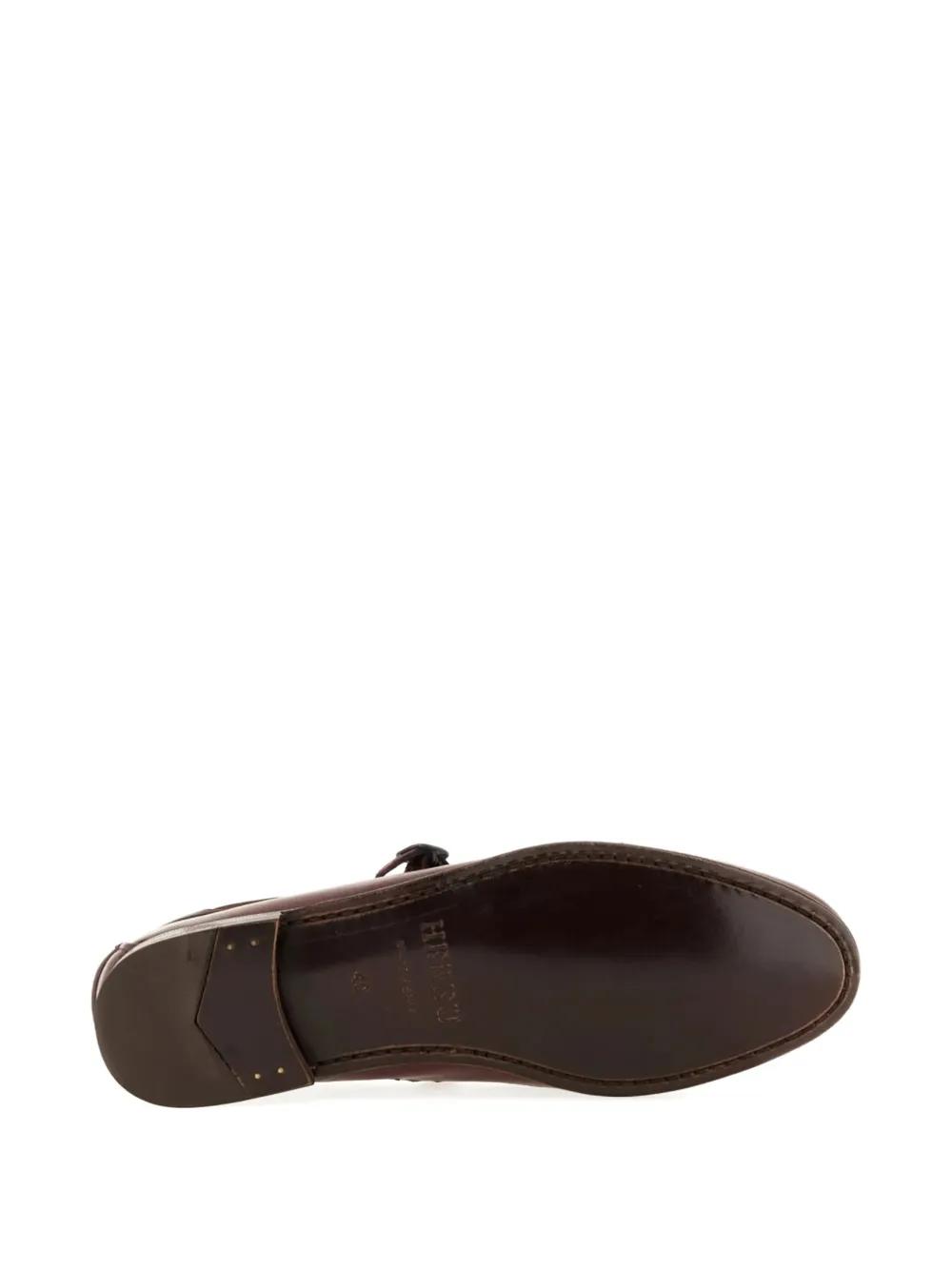 burgundy leather bow detail buckle-strap topstitching round toe flat sole