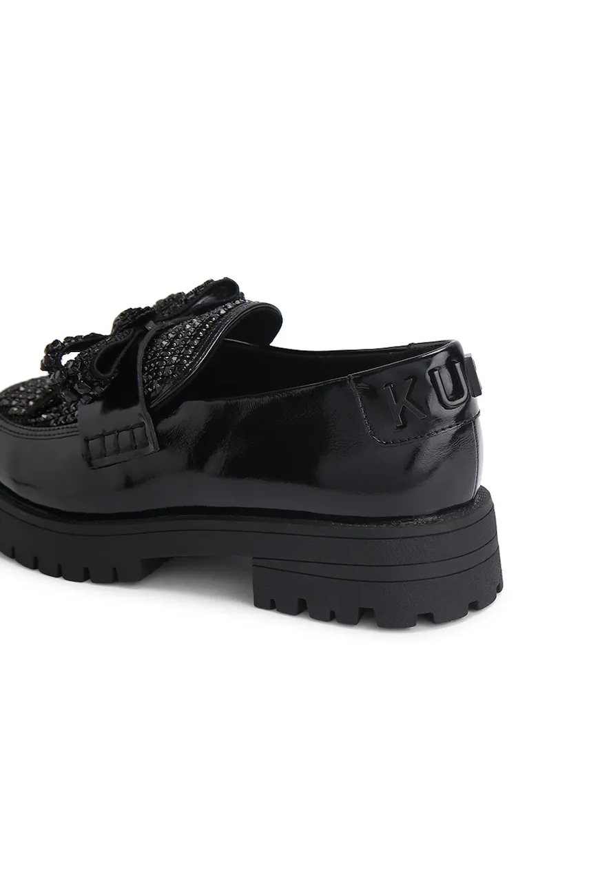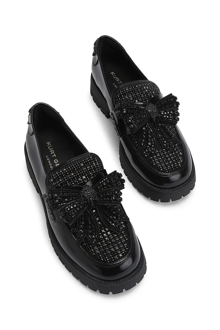 Kurt Geiger London mokasyny skórzane Bow Crystal Loafer damskie kolor czarny na płaskim obcasie 5388400109