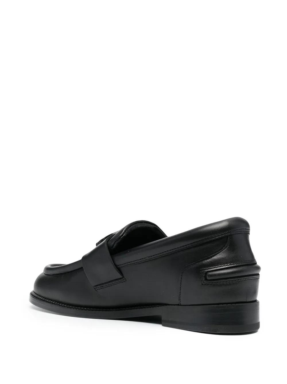 black calf leather logo tag round toe flat sole