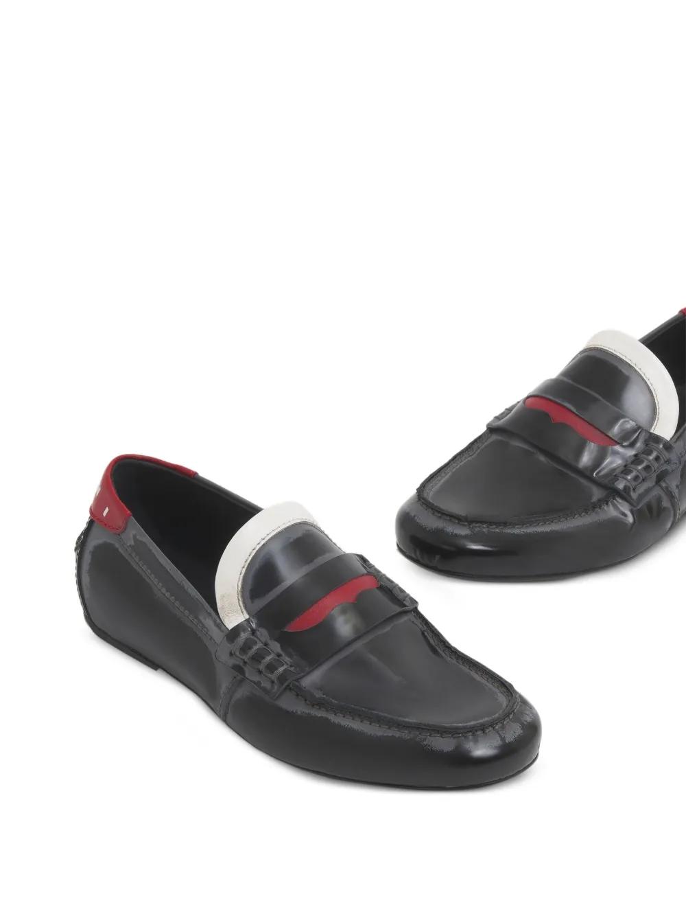 black calf leather contrast slit penny strap hand-stitched vamp branded heel tab