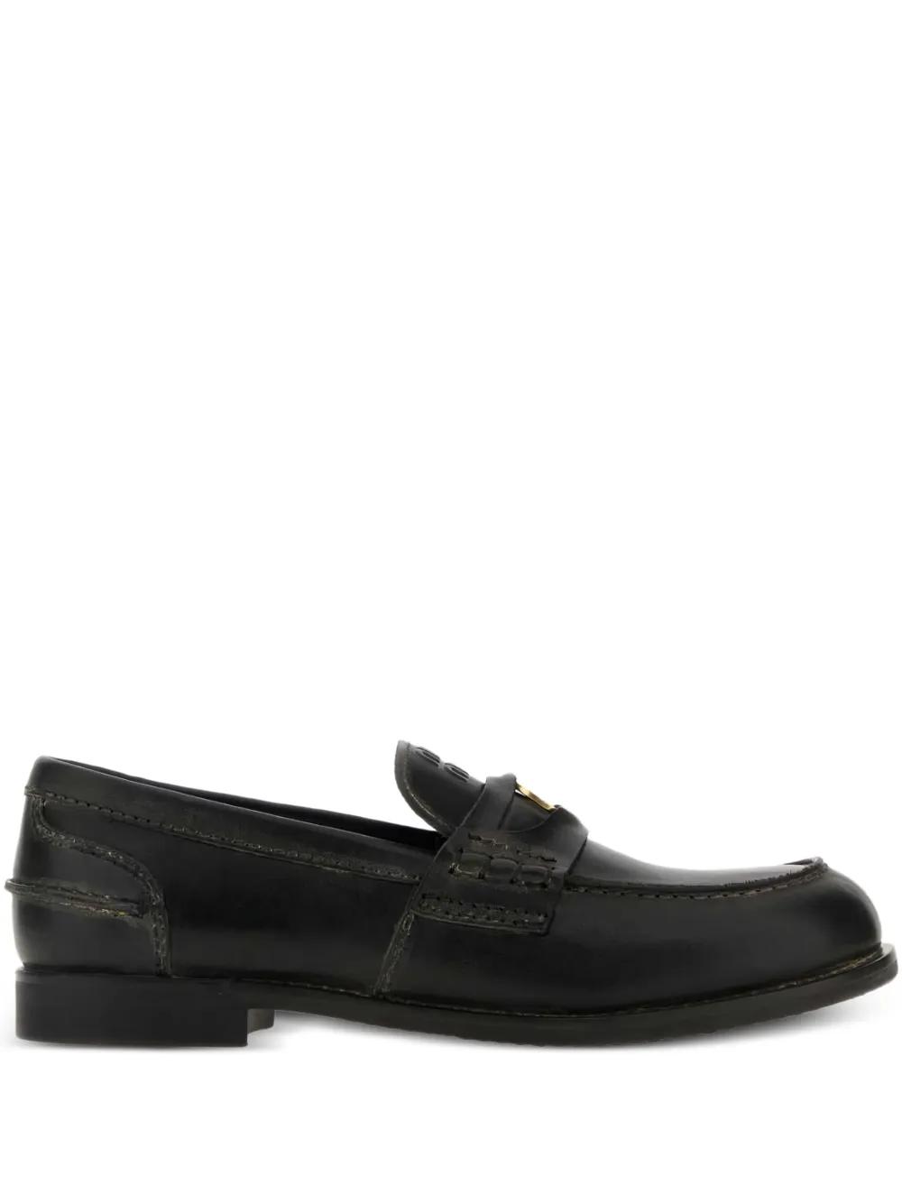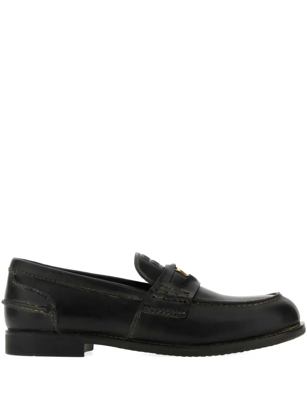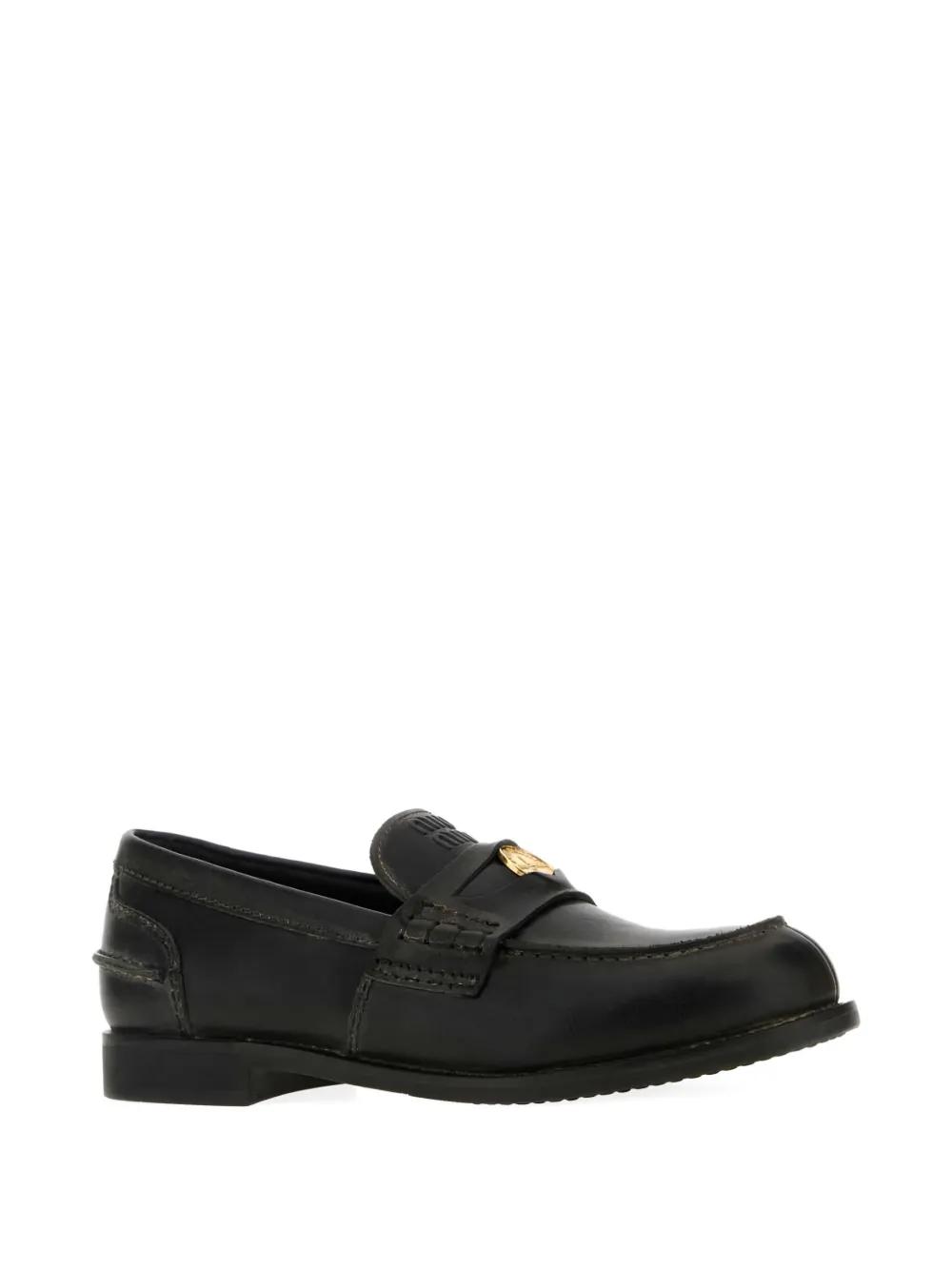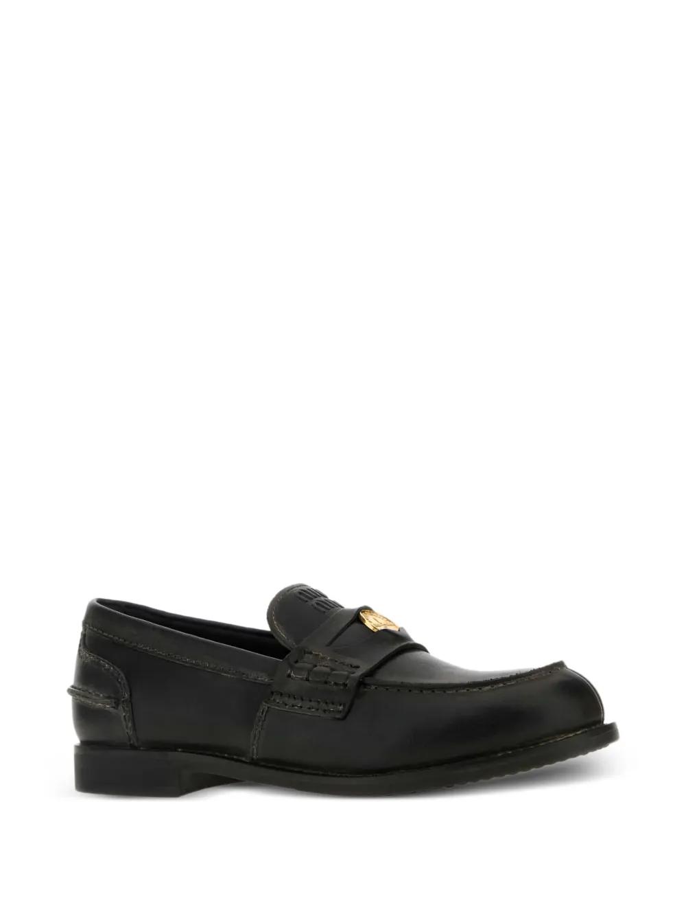 black leather exterior gold-tone hardware moc toe rubber sole stitched detail