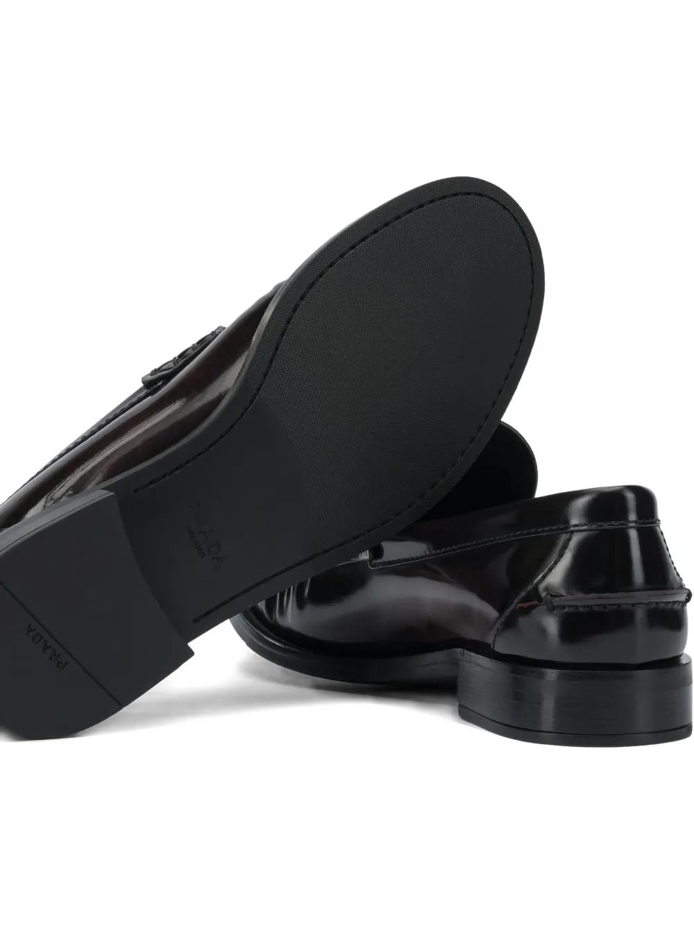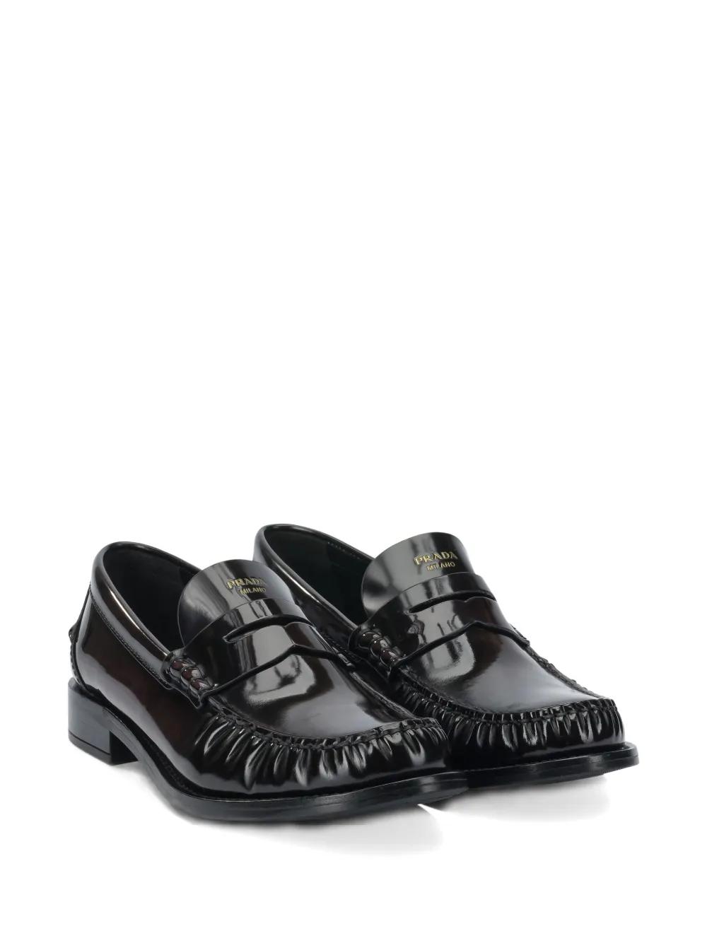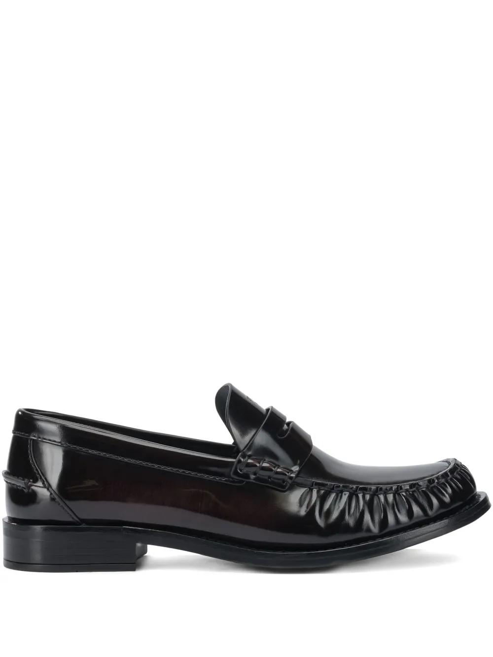 brown leather upper penny strap lug sole metallic logo pointed toe