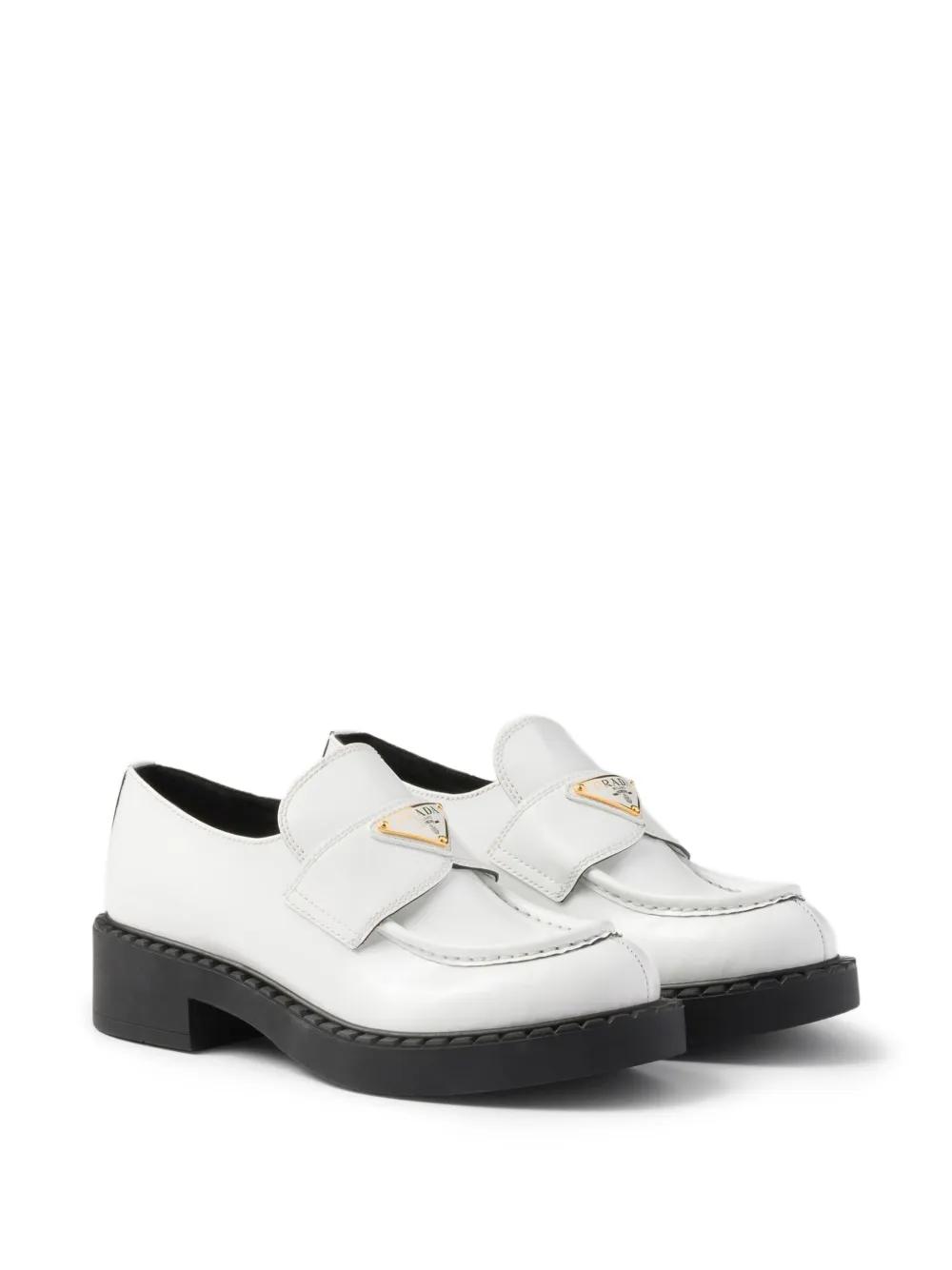 Prada triangle-logo leather loafers - White