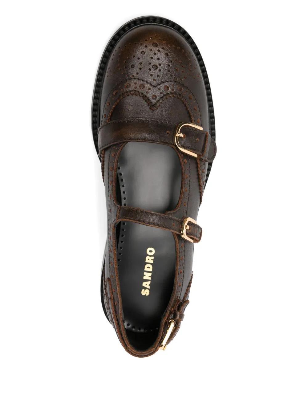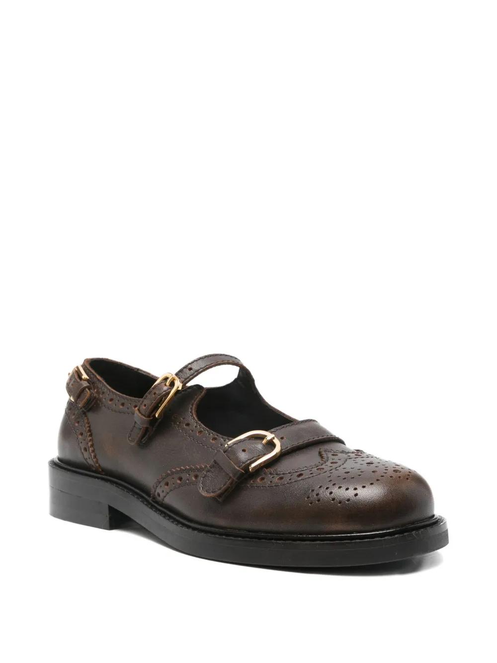 brown leather upper brogue detailing double buckle fastening mary jane strap flat sole