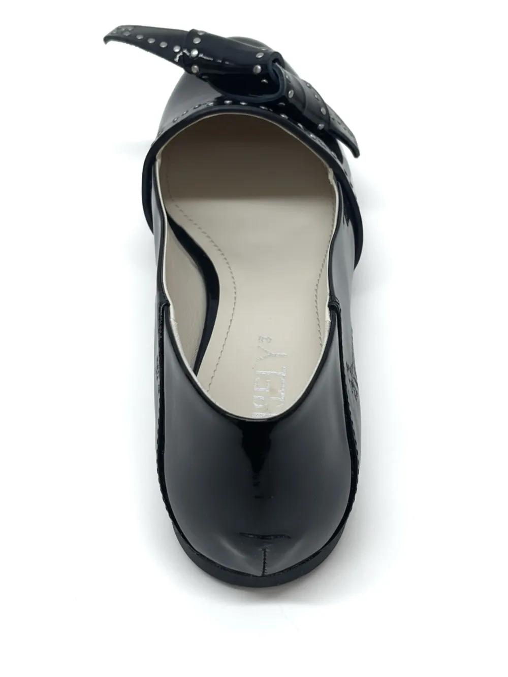 black bow detail stud embellishments pointed toe flat sole slip-on style
